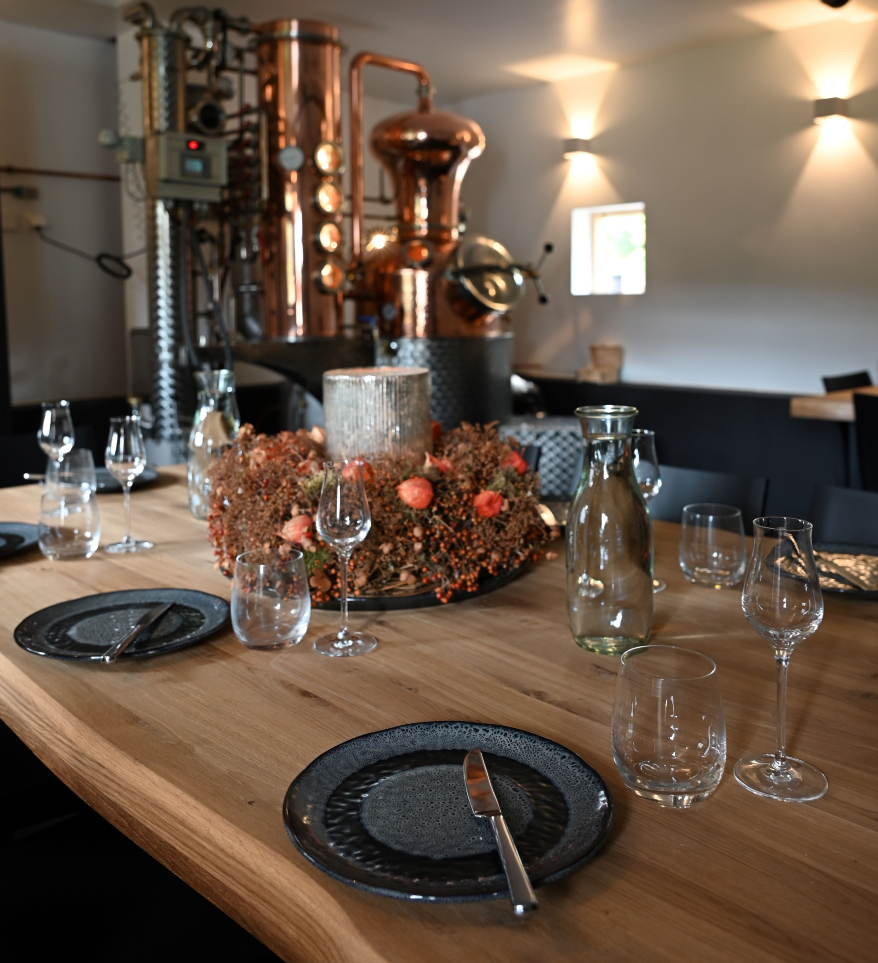 Brennmeister Michael Mörsel lädt ein in sein Allerheiligstes. Die Verkostung findet im besonderen Ambiente des neu gestalteten Brennraums statt.