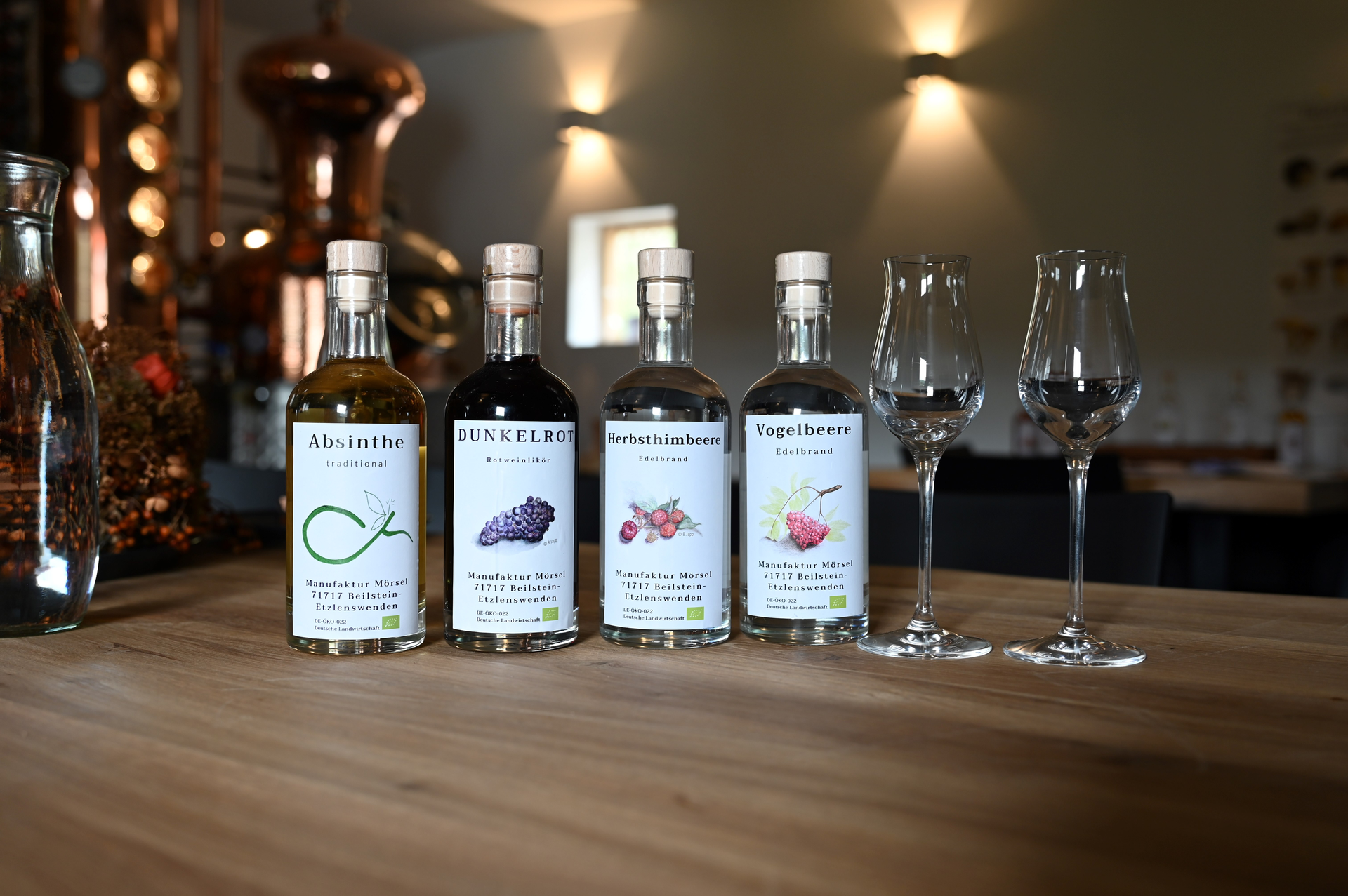 Das Besondere: es werden nur die goldprämierten Spitzenbrände der Manufaktur zum Verkosten angeboten: vom Wildkirschbrand, über Birnenbrände bis hin zu Mispel oder Absinthe.