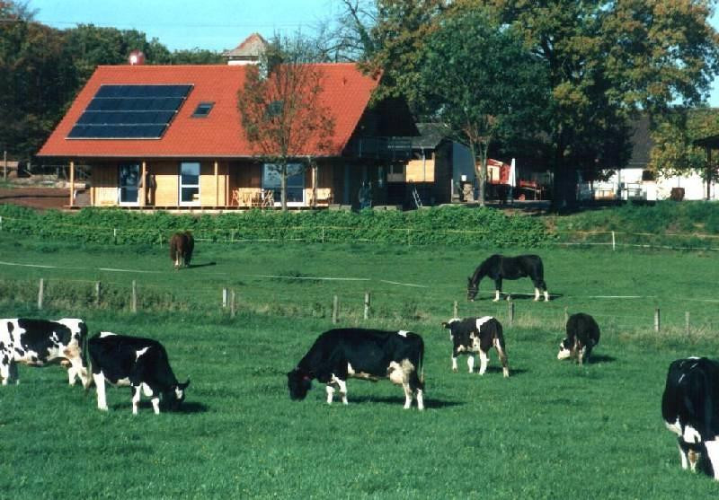 Das neue Holzhaus in Niedrigenergiebauweise steht auf unserem Hof, ruhig gelegen, in einer idyllischen und sehr sonnigen Lage. Es bietet eine wunderbare Aussicht über Weinberg, Wald und Weiden. Erholung für die ganze Familie auf der großen Spielwiese. Für unseren kleine Gäste haben wir Sandkasten, Trampolin, Schaukel, Spielzeug und natürlich viel Platz zum Spielen.