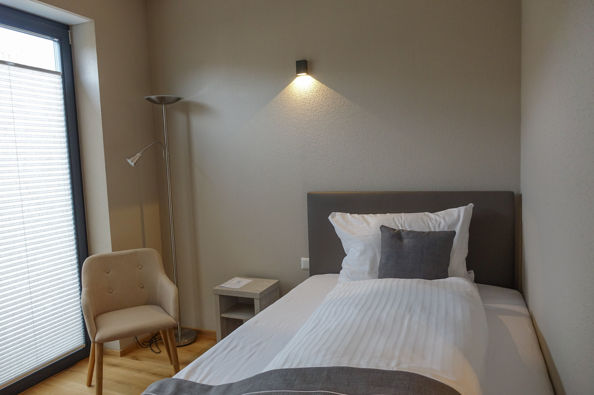 Im modernen Gästehaus außerhalb von Lauffen am Neckar sorgen geschmackvoll eingerichtete Zimmer und hochwertige Boxspringbetten für behaglichen Komfort.
