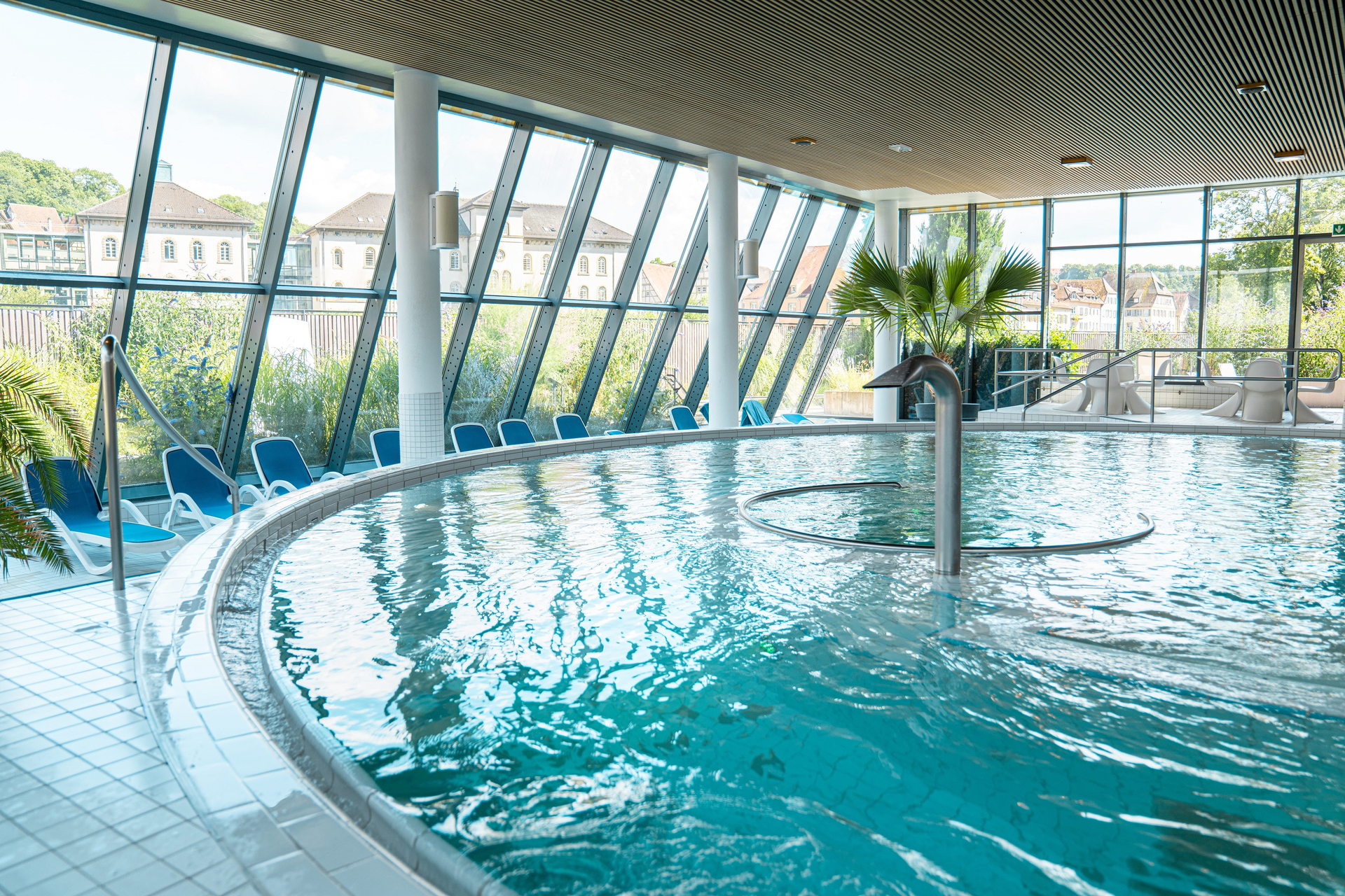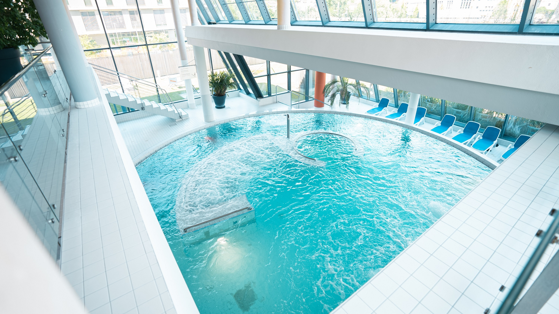 - Vital-Rundbecken (35 °C) mit Sprudelliege und kreisender Strömung