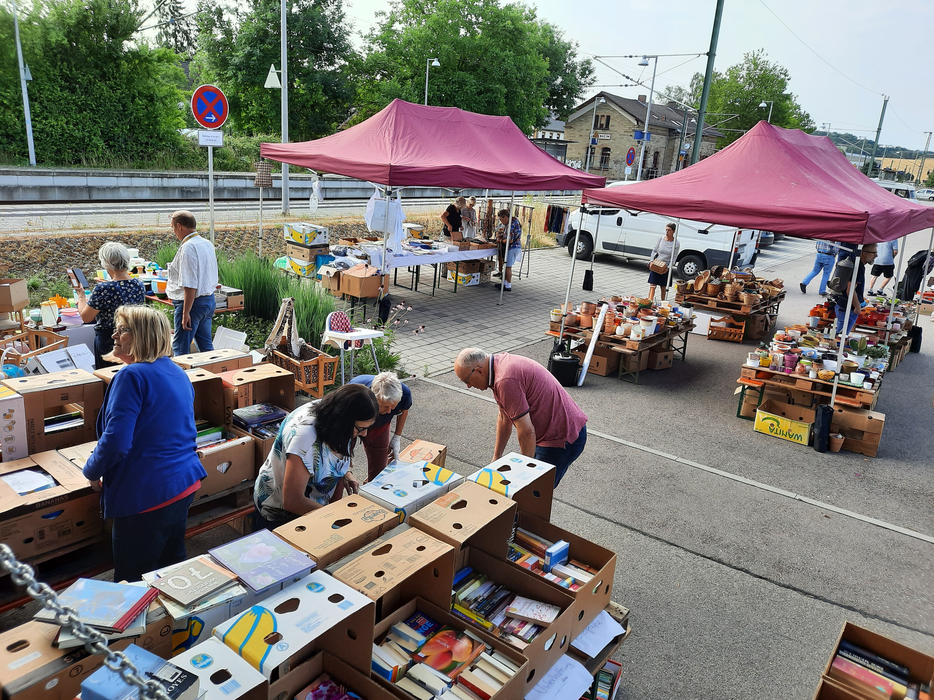 An der alten Sortier- und Lagerhalle am Parkplatz hinter dem Bahnhof erfolgt wieder der allseits beliebte Flohmarkt. Angeboten wird Deko, Haushaltswaren, Kinderspielsachen, Bücher, Elektroartikel, Keramikwaren, Körbe usw. Alles wie immer zu günstigen Preisen.