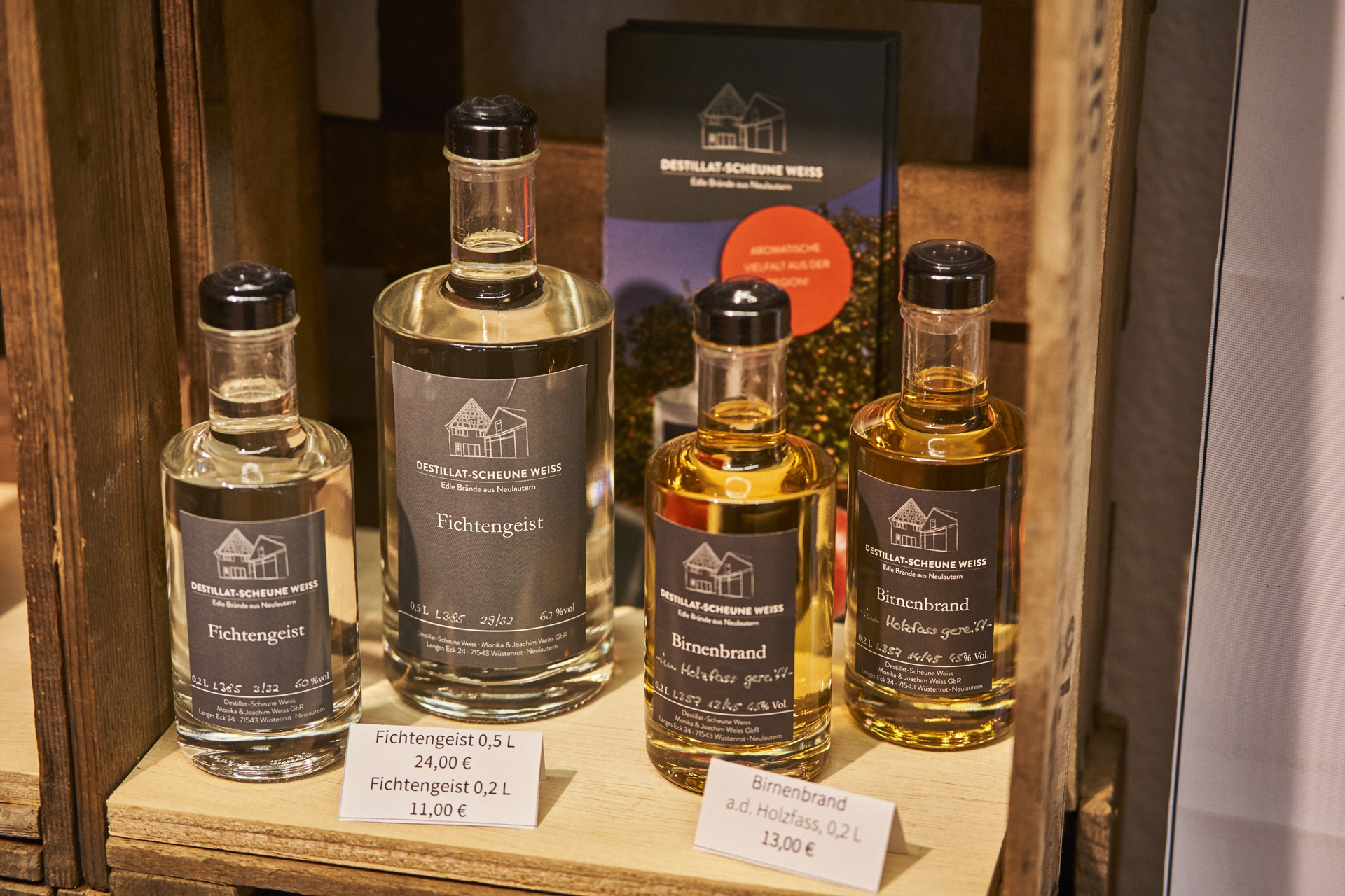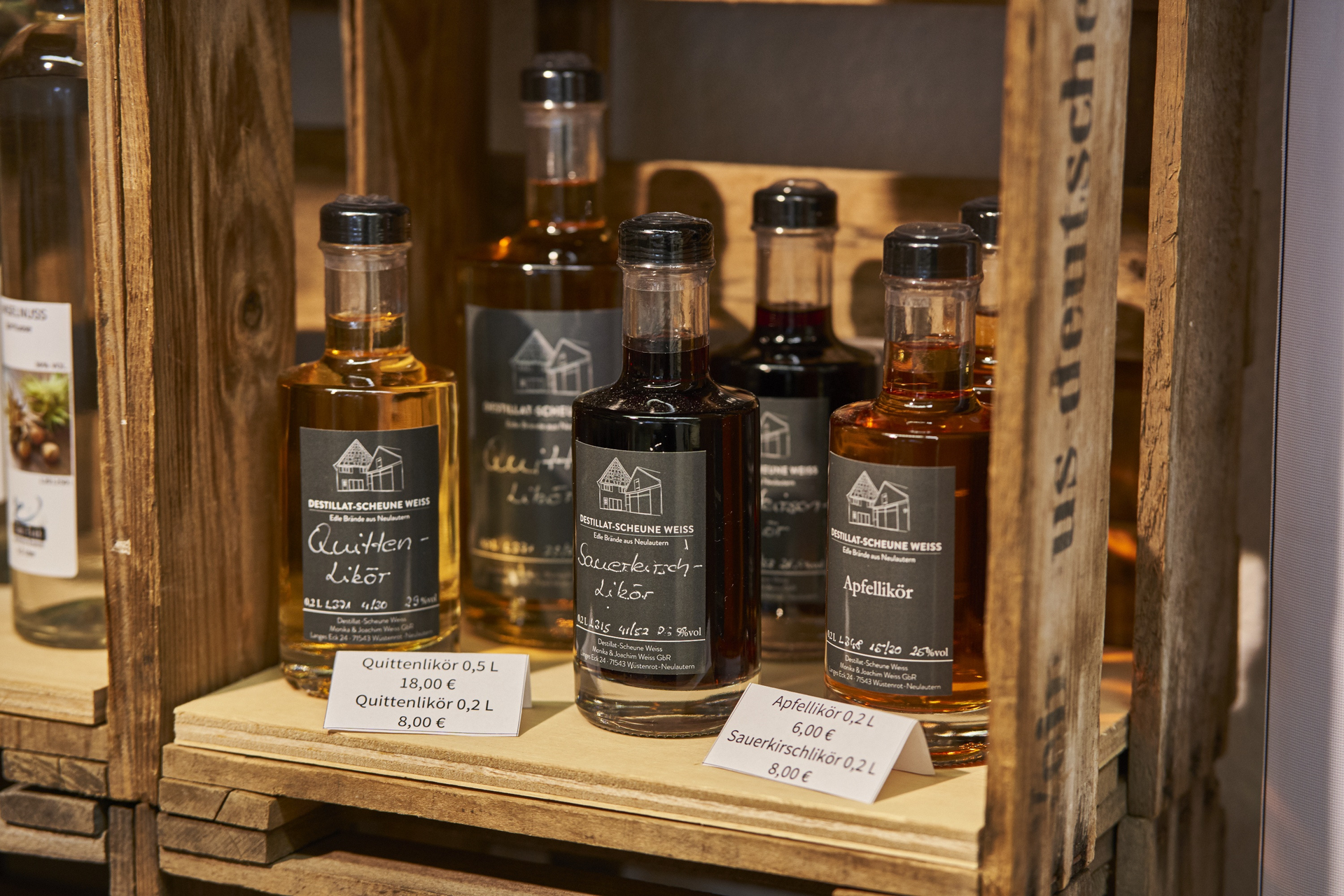 Die Brennerei Destillat-Scheune Weiss bietet im historischen Ambiente Verkostungen zu Brand,- Geist-, oder Likören an.