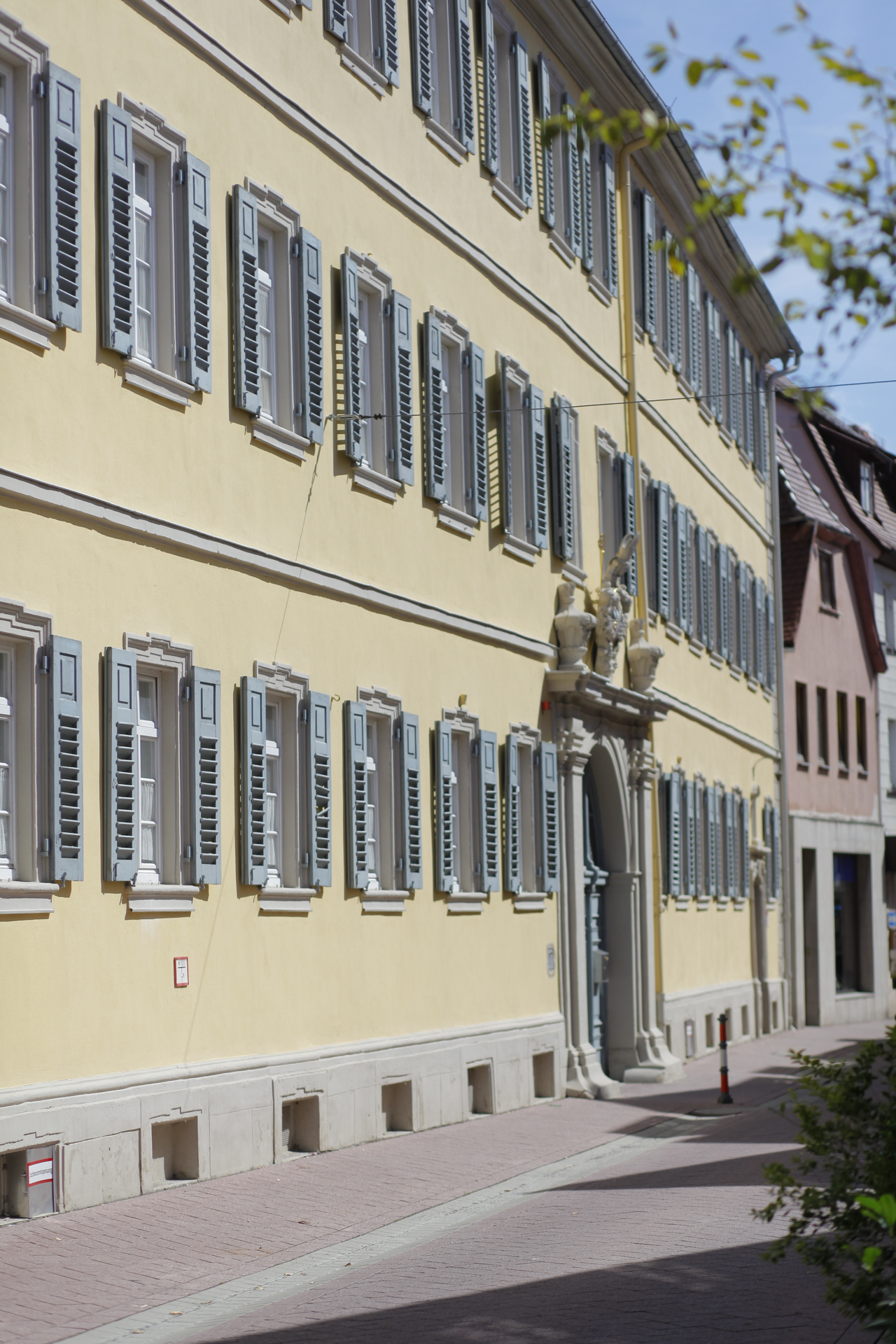 Das prunkvolle Wappen über dem Eingangstor erinnert daran, dass dieses Anwesen einst zum Besitz der Zisterzienser von Schöntal gehörte. Das heutige Gebäude und die durch ein Portal gekennzeichnete Kapelle stammen aus dem 18. Jahrhundert.