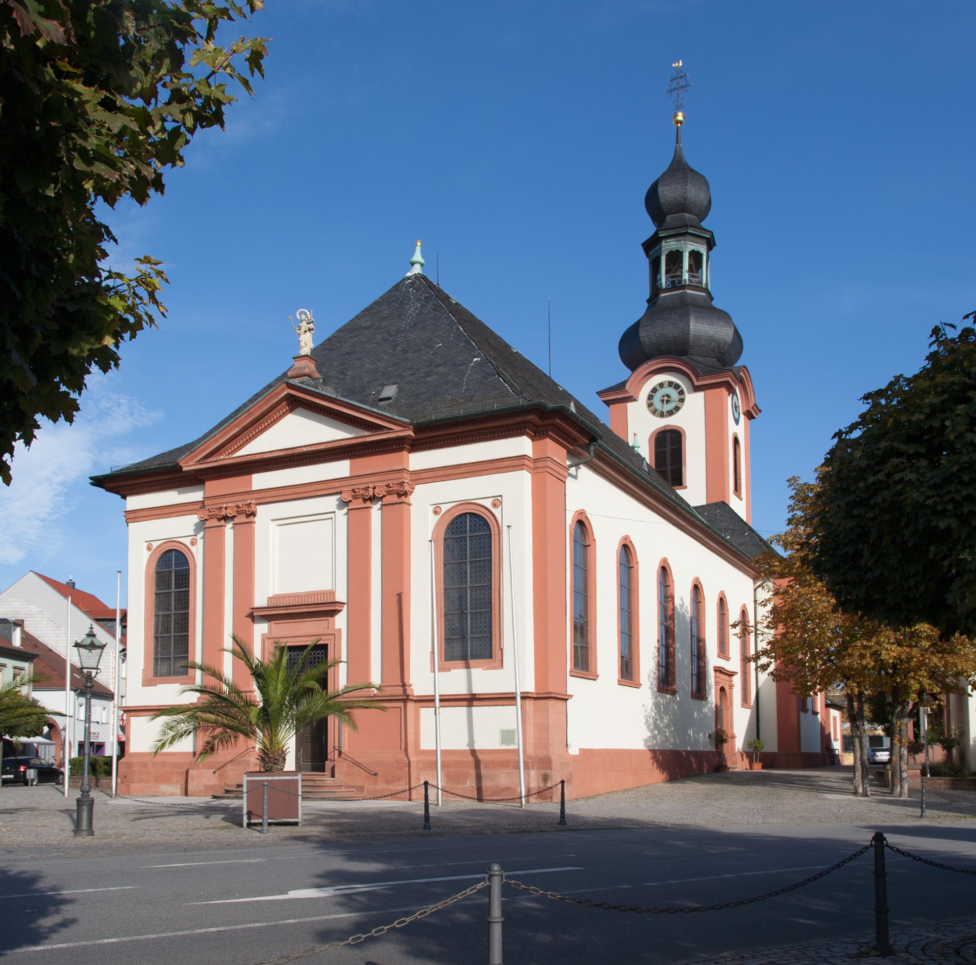 Das älteste Gotteshaus der Stadt erhielt seine spätbarocke / frühklassizistische Fassade im letzten Drittel des 18. Jahrhunderts durch die Hofbaumeister Sigismund Zeller, Franz Wilhelm Rabaliatti und Nicolas de Pigage. Der Innenraum entfaltet mit dem barocken Hochaltar, den Skulpturen (u.a. des Hofbildhauers Paul Engel) und den Malereien eine vielfältige, künstlerische Pracht.