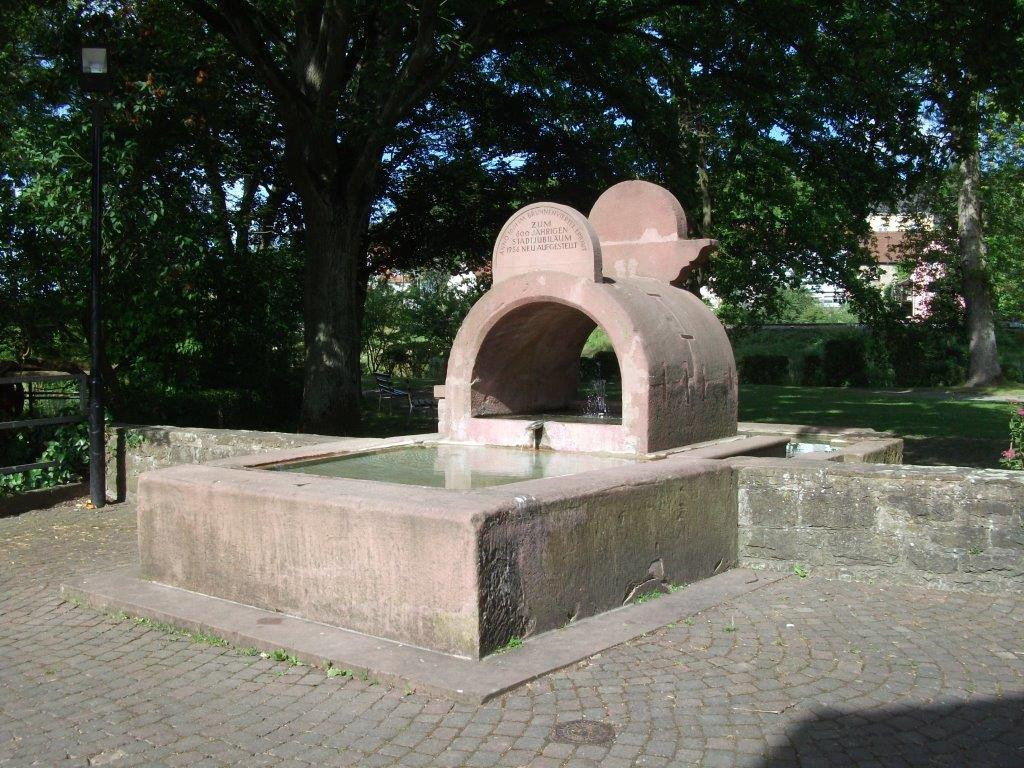 Der Stadtbrunnen liegt neben der Kapellenstraße im Stadtgarten und ist jederzeit zugänglich.