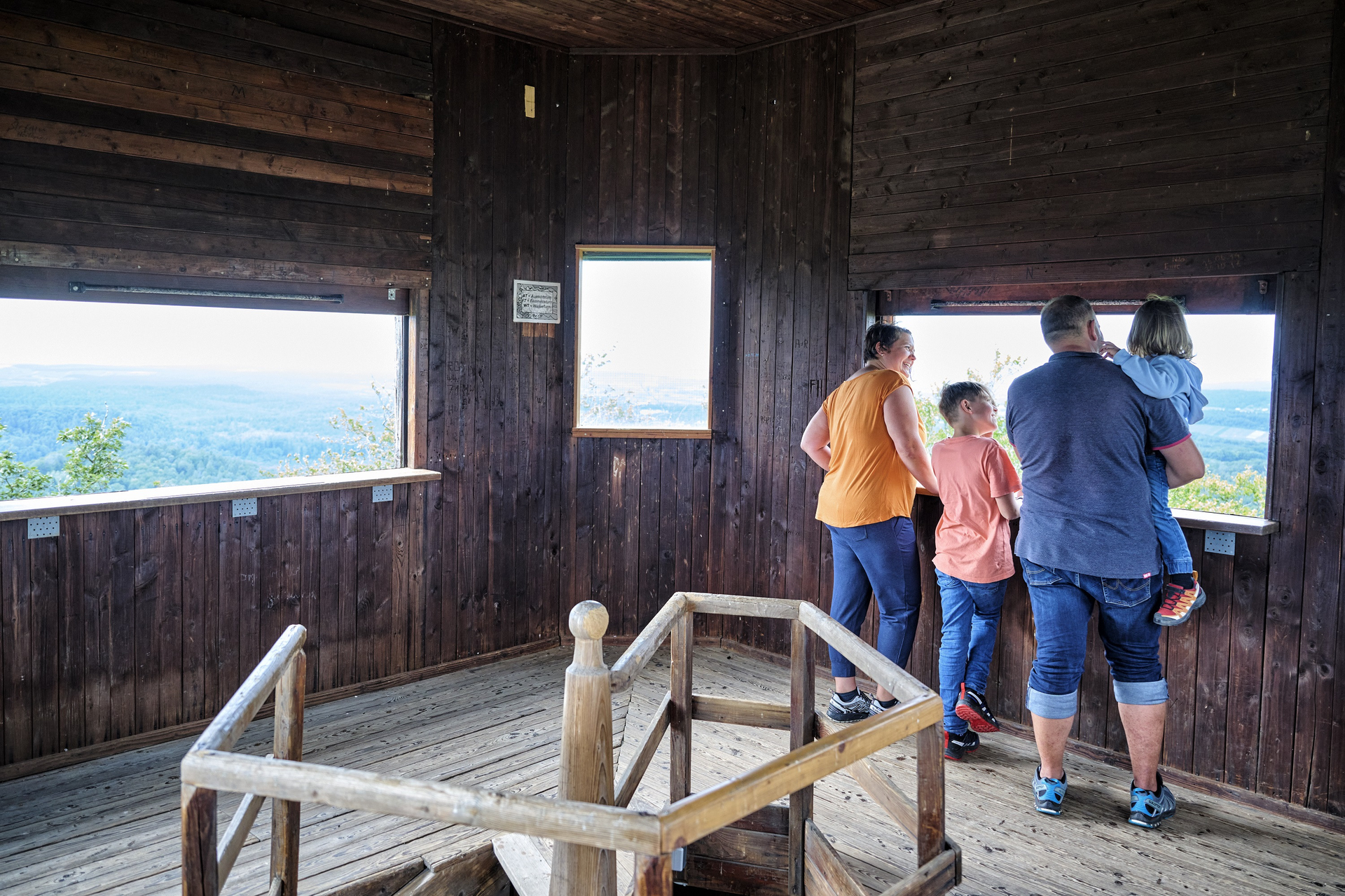 Der Aussichtsturm ist grundsätzlich ganzjährig von 10 bis 16 Uhr "begehbar". Der Schlüssel muss allerdings je nach Wochentag und Uhrzeit an unterschiedlicher Stelle abgeholt werden: