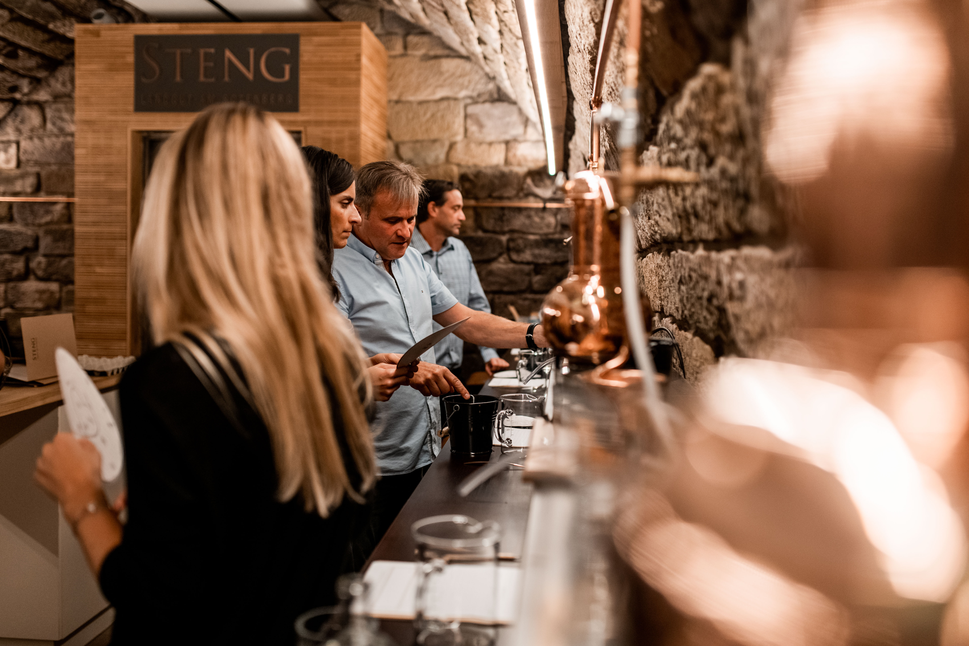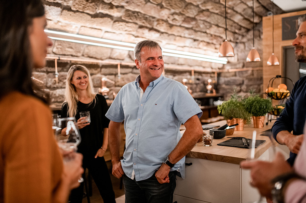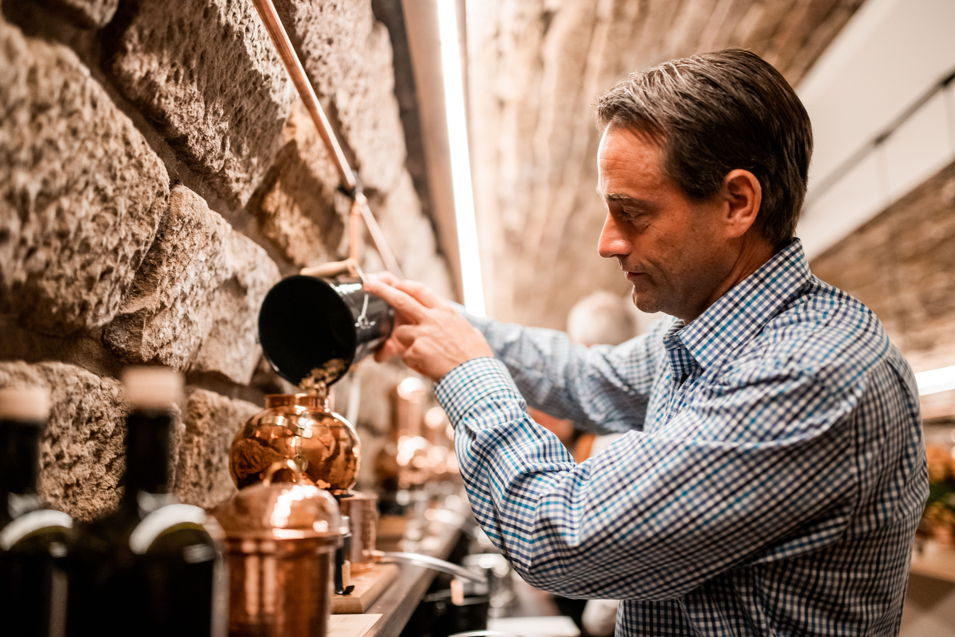 Für ein Team-Event findet sich im alten Gewölbekeller auf dem Landgut eine kleine Brennanlage für Gin-Workshops.