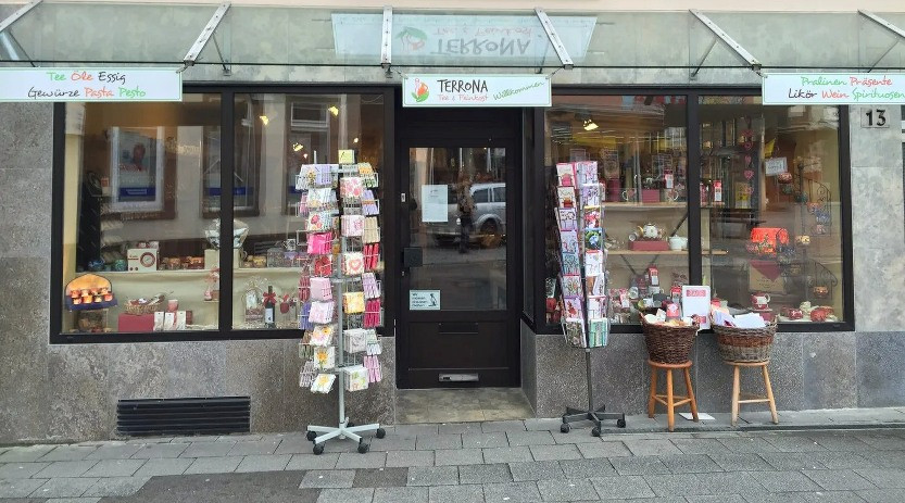 Bei Terrona Tee & Feinkost erwartet Sie alles, was das Gourmet-Herz begehrt. Ob für Teeliebhaber oder Hobbyköche, im Ladengeschäft werden eine große Vielfalt an Teesorten, Ölen & Essigen, Gewürzen, Weine, Grappas, Liköre und Pralinen aus der Region angeboten.