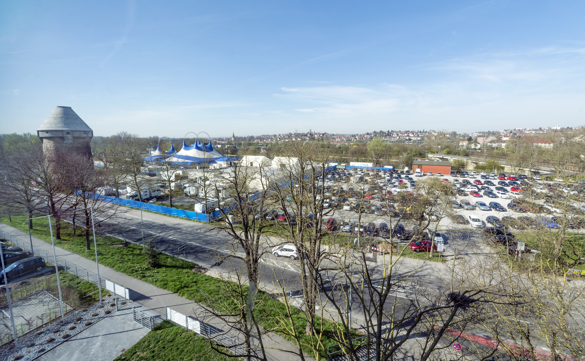 Der nördliche Platzbereich (Einfahrt Verlängerung Frankfurter Straße) ist kostenpflichtig. Die maximale Parkdauer auf dem gesamten Platz beträgt 24 Stunden. Verboten ist das Parken von LKWs.