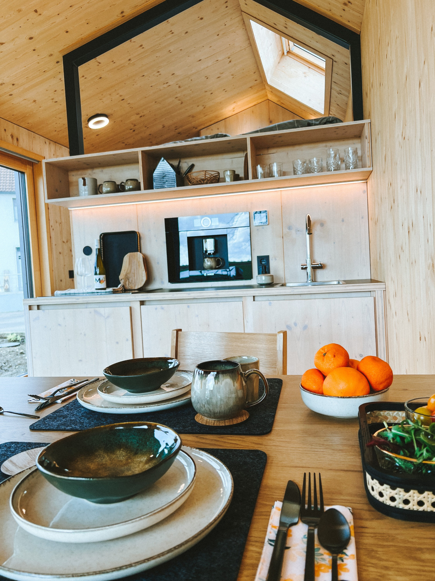 Ob zum Abschalten, Auftanken oder Ausprobieren des Tiny-Lifestyles – hier findest du alles, was du brauchst. Große Panoramafenster holen die Natur direkt ins Haus, die moderne Einrichtung sorgt für Wohlfühlmomente, und clevere Details wie ein Kaffeevollautomat, Sonos-Soundsystem, Regendusche und elektrische Dachfenster machen deinen Aufenthalt besonders angenehm.