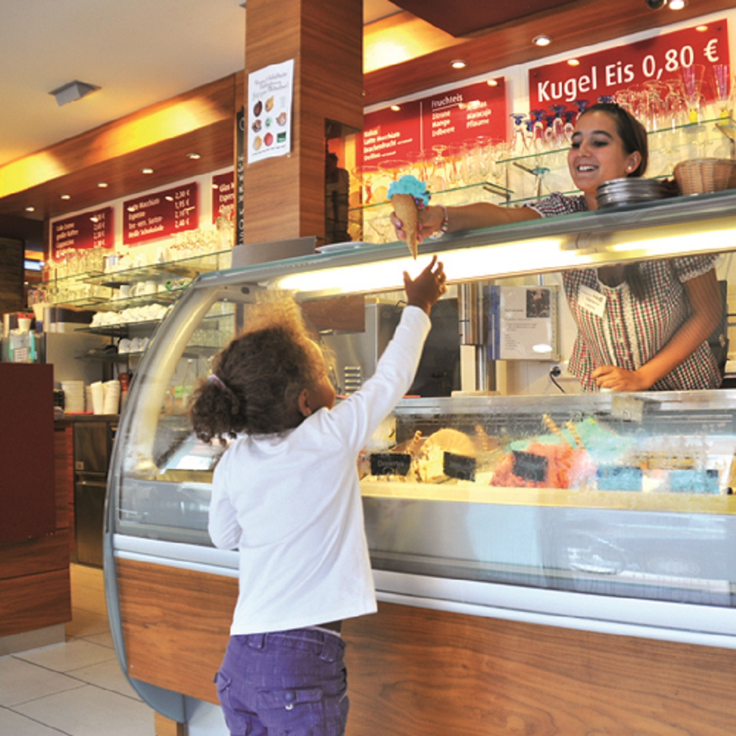 Gutes genießen und sich etwas Gutes tun - das ist im gemütlichen Ambiente im Café sowie im Grünen bei Sonnenschein ein Leichtes. Lassen Sie sich verwöhnen vom freundlichen Service, dem umfangreichen Angebot an frischen Backwaren, feinen Kuchen, Süßgebäck, Frühstücksvariationen, Pizza, verschiedenen sowie Eis-Spezialitäten aus eigener Herstellung. Zentral gelegen der Treffpunkt für einen geselligen Start zu Wanderungen, Radtouren und Ausfahrten.