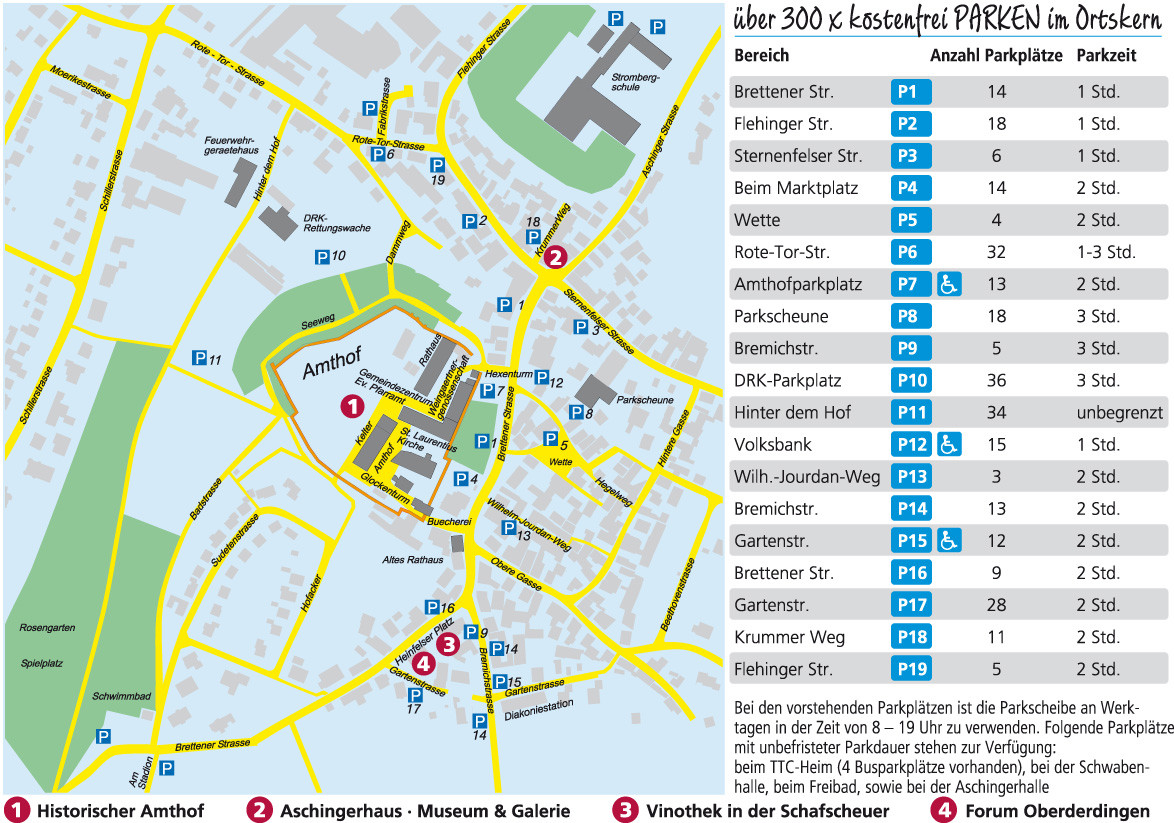 Über 300 kostenfreie Parkplätze rund um den historischen Ortskern von Oberderdingen