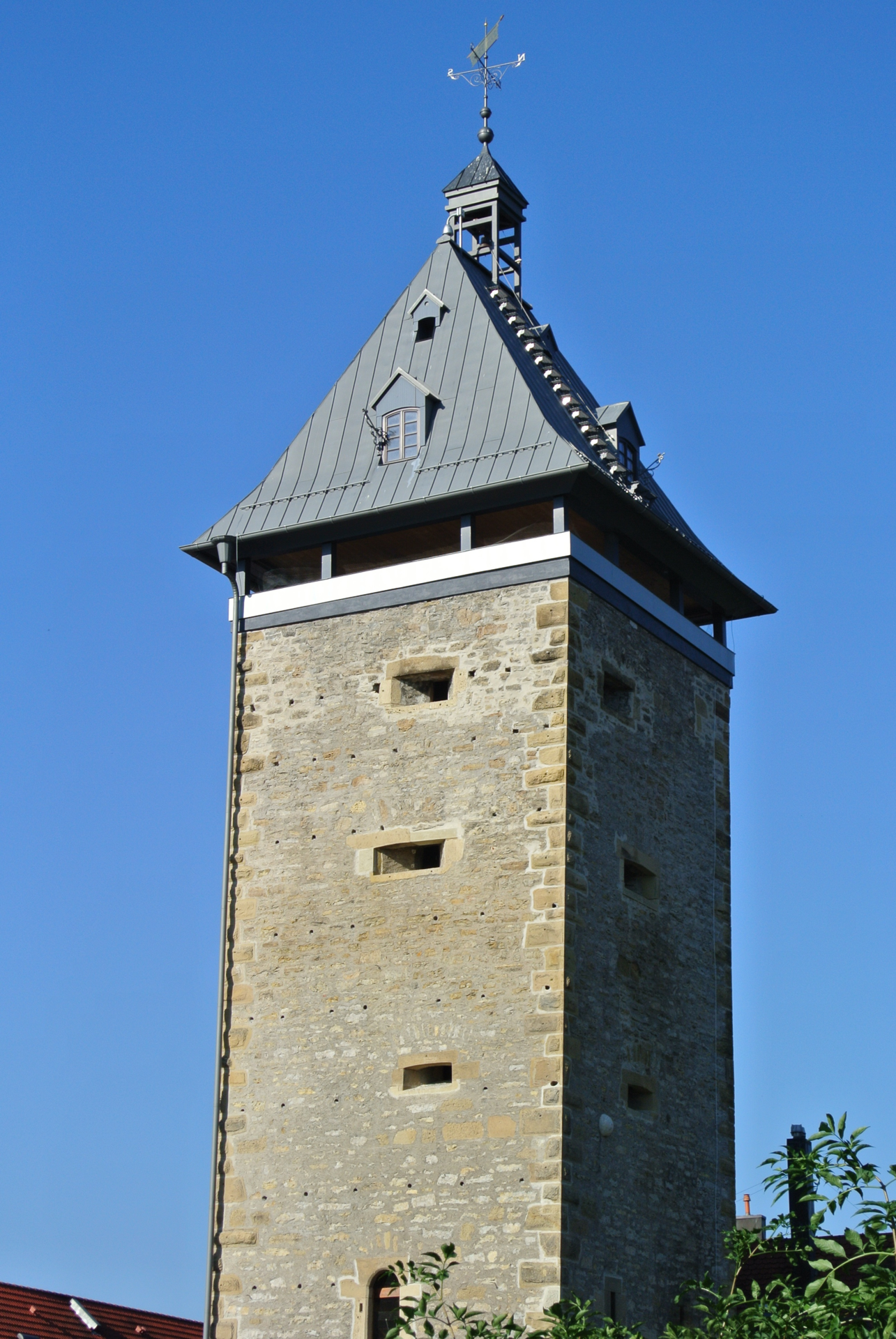 In die Brettener Stadtmauer eingebunden waren einst zwei mächtige Türme: der Pfeiferturm im Norden und der Simmelturm im Süden.
