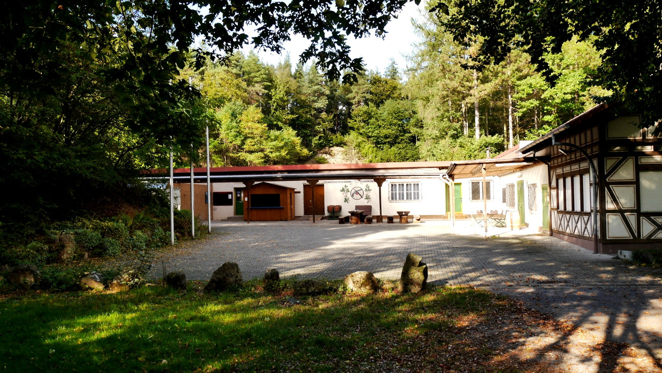 Auf der Bergkuppe des "Hagenrain", einem ehemaligen Steinbruchgelände, befindet sich heute die Oberderdinger Schießsportanlage und eine Spielwiese mit Hütte und Grillplatz.