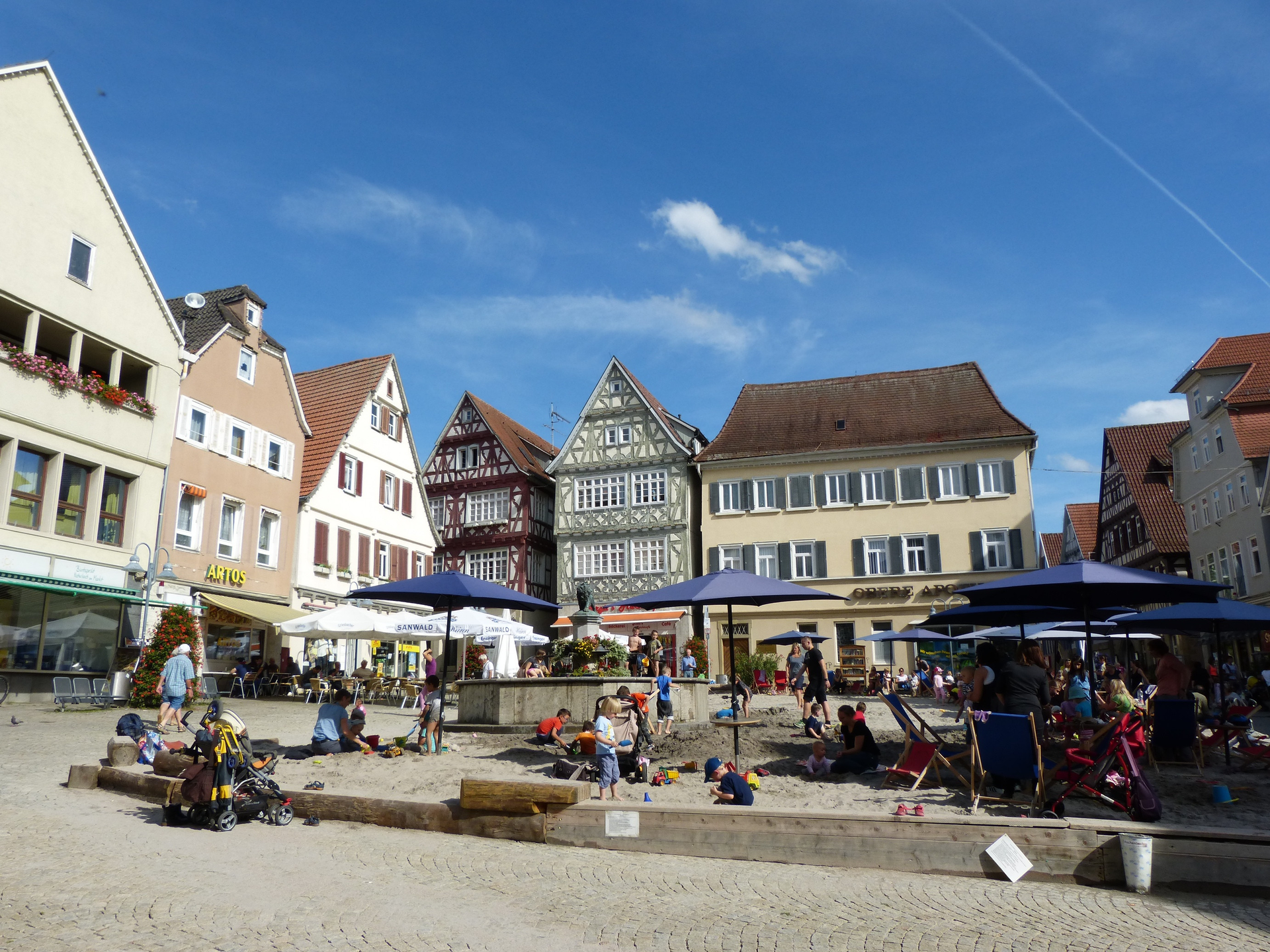 Alle die in den Sommerferien daheim bleiben und trotzdem Zeit am Strand verbringen möchten, sollten das Vaihinger Strandleben nicht verpassen. Jedes Jahr verwandelt sich der Vaihinger Marktplatz während der Sommerferien in einen riesigen Sandstrand mit Liegestühlen und Strandcafé.