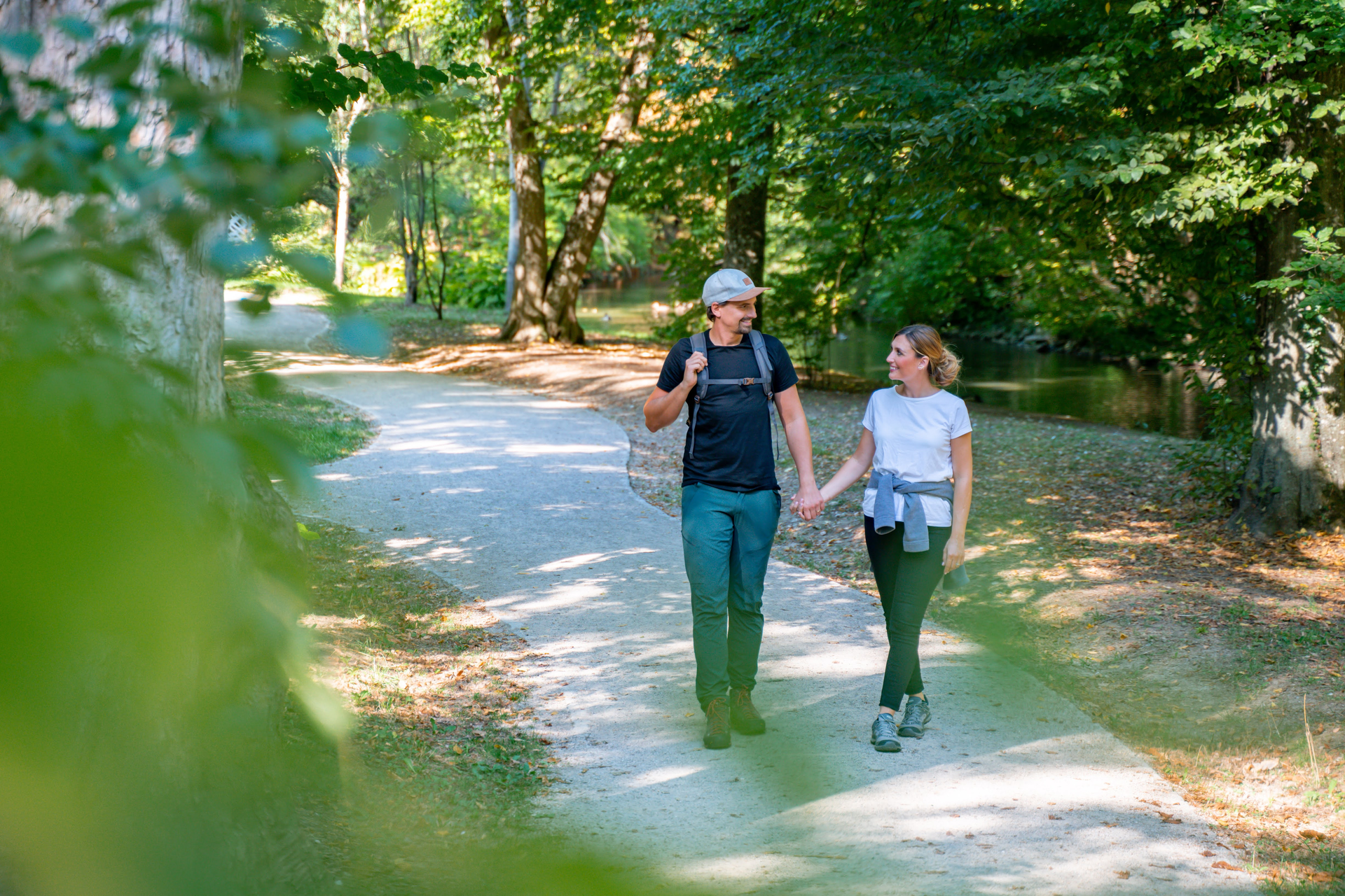 - Diese Wanderung beginnt mit einem Anstieg von 100 Metern bei der Solymar Therme den Arkau hinauf. Der Weg oberhalb des Erlenbachtals, aber unterhalb von Löffelstelzen wird mit einer herrlichen Aussicht auf das Taubertal belohnt. Dann geht es etwa 50 m abwärts ins Erlenbachtal zur Marienruhe, um wieder 2 km durch Mischwald etwa 60 m hoch auf den Altenberg zum Vogelherd zu wandern. Der Vogelherd war kurze Zeit eine Vogelfangstation aus der letzten Mergentheimer Zeit des Deutschen Ordens. Zurück geht es wieder hinunter in das Erlenbachtal und über den Golfplatz in den Kurpark.