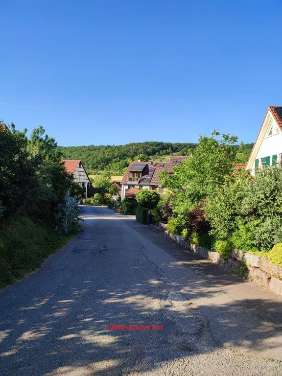 Dort nach rechts zum Füllmenbacher-Hof-Sträßchen und links weiter zum Füllmenbacher Hof. Durch die Hofanlage hinauf zum Hofberg. Die ehemaligen Weinbergflächen sind heute ein wertvolles Naturschutzgebiet. Von der Kuppe des Hofberges wird man für den Aufstieg mit einem schönen Blick hinunter ins stille Streitenbachtal belohnt. Nun geht es auf dem Strombergrücken durch den Wald, gleichlaufend mit dem Wanderzeichen "Blaues Kreuz" des Schwäbischen Albvereins in Richtung Sternenfels. Nach etwa 2,5 km Wegstrecke, der Abzweigung zum Füllmenbacher Hof folgend, kommt man zur Metterquelle, die im Laufe der Jahrtausende eine beachtliche Schlucht ausgespült hat.