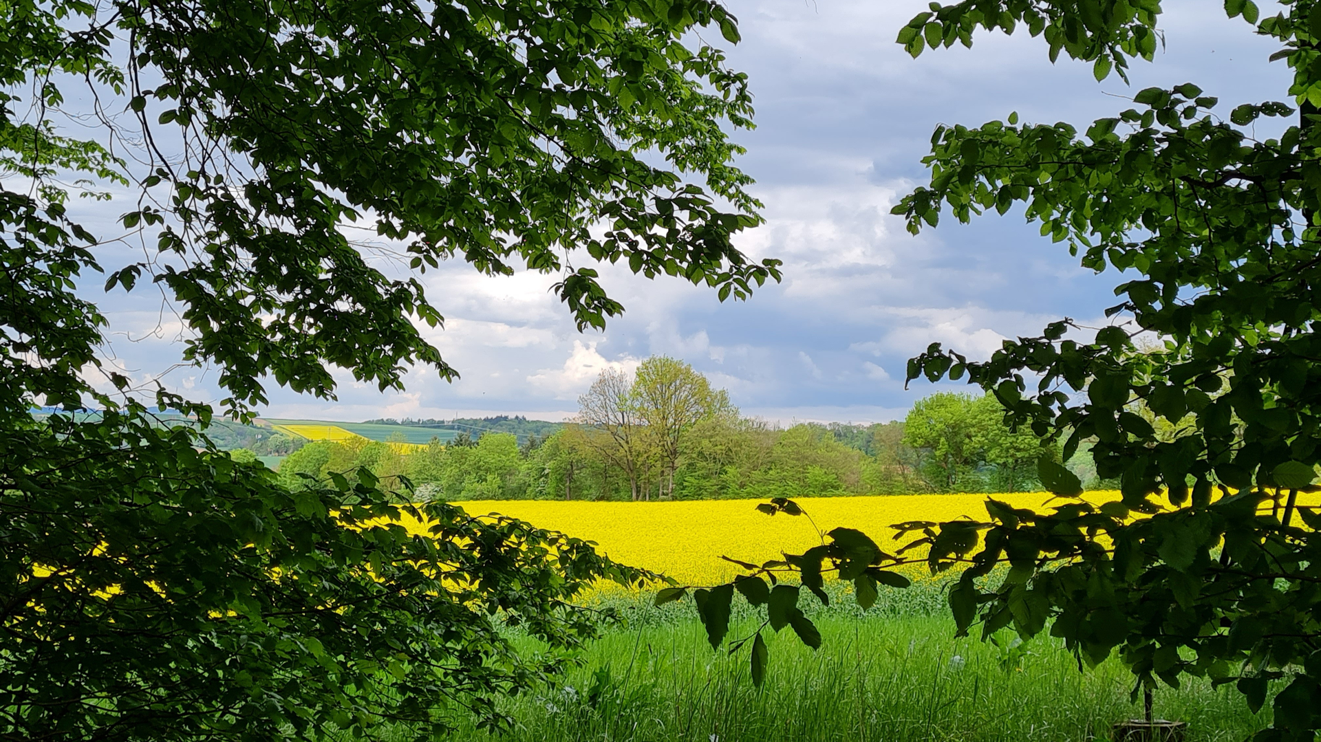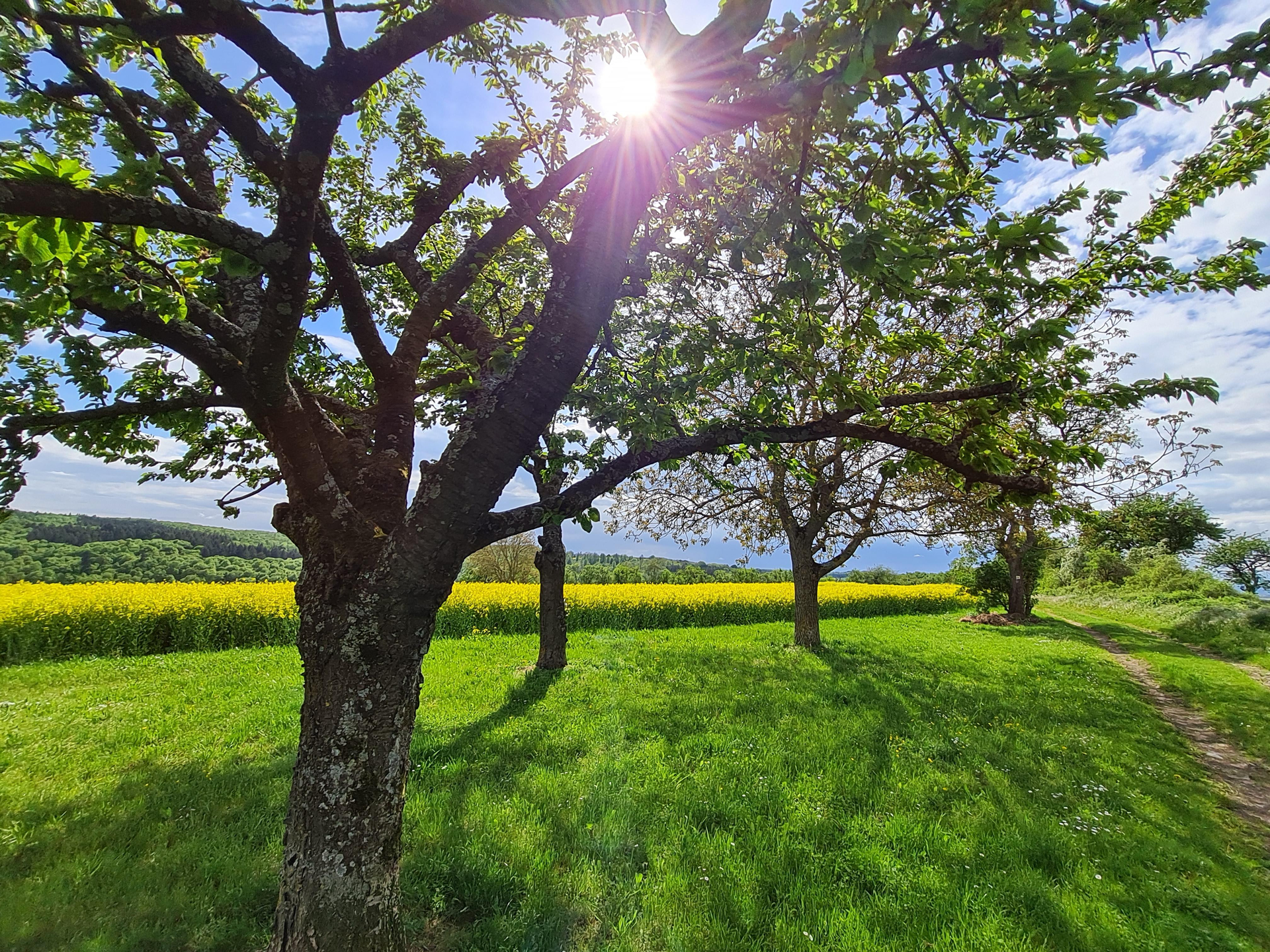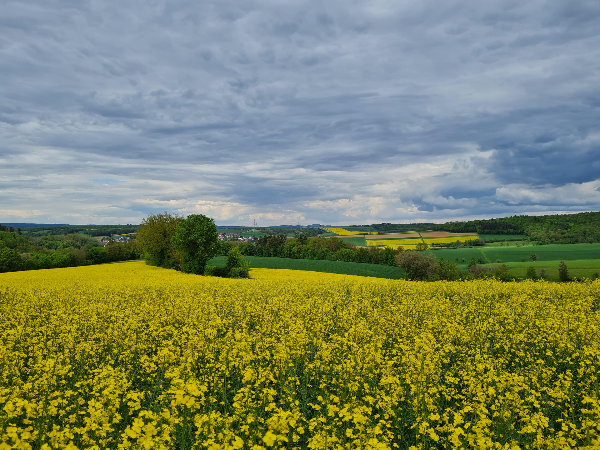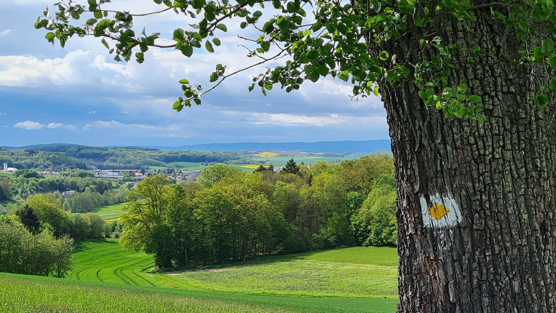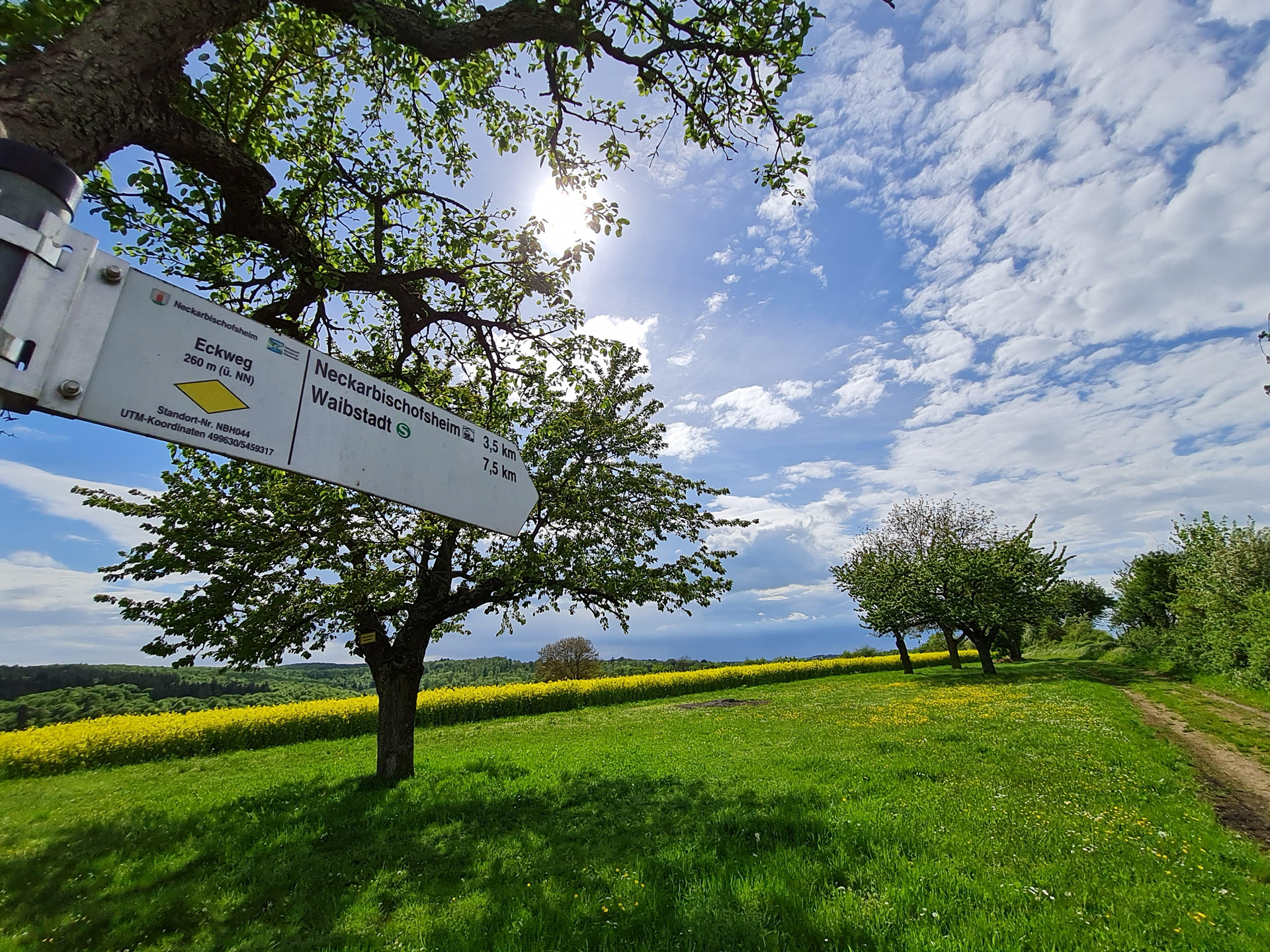 Fachwerkbauten und ehemalige landwirtschaftliche Gehöfte prägen das Dorfbild in Hüffenhardt. Sobald das Dörfchen verlassen wird, eröffnet sich einem eine sanfte Hügellandschaft mit blühenden Rapsfeldern und saftig grünen Wiesen - ein Anblick, den man sofort mit dem Monat Mai assoziiert. Inmitten der abwechslungsreichen Landschaft gibt es immer etwas zu entdecken. Das kleine Örtchen Wollenberg wird durchquert. Ein Waldweg führt ab dort über die Hügelkette mit herrlichen Ausblicken bis hin zur höchsten Erhebung im Odenwald, dem Katzenbuckel, nach Neckarbischofsheim.