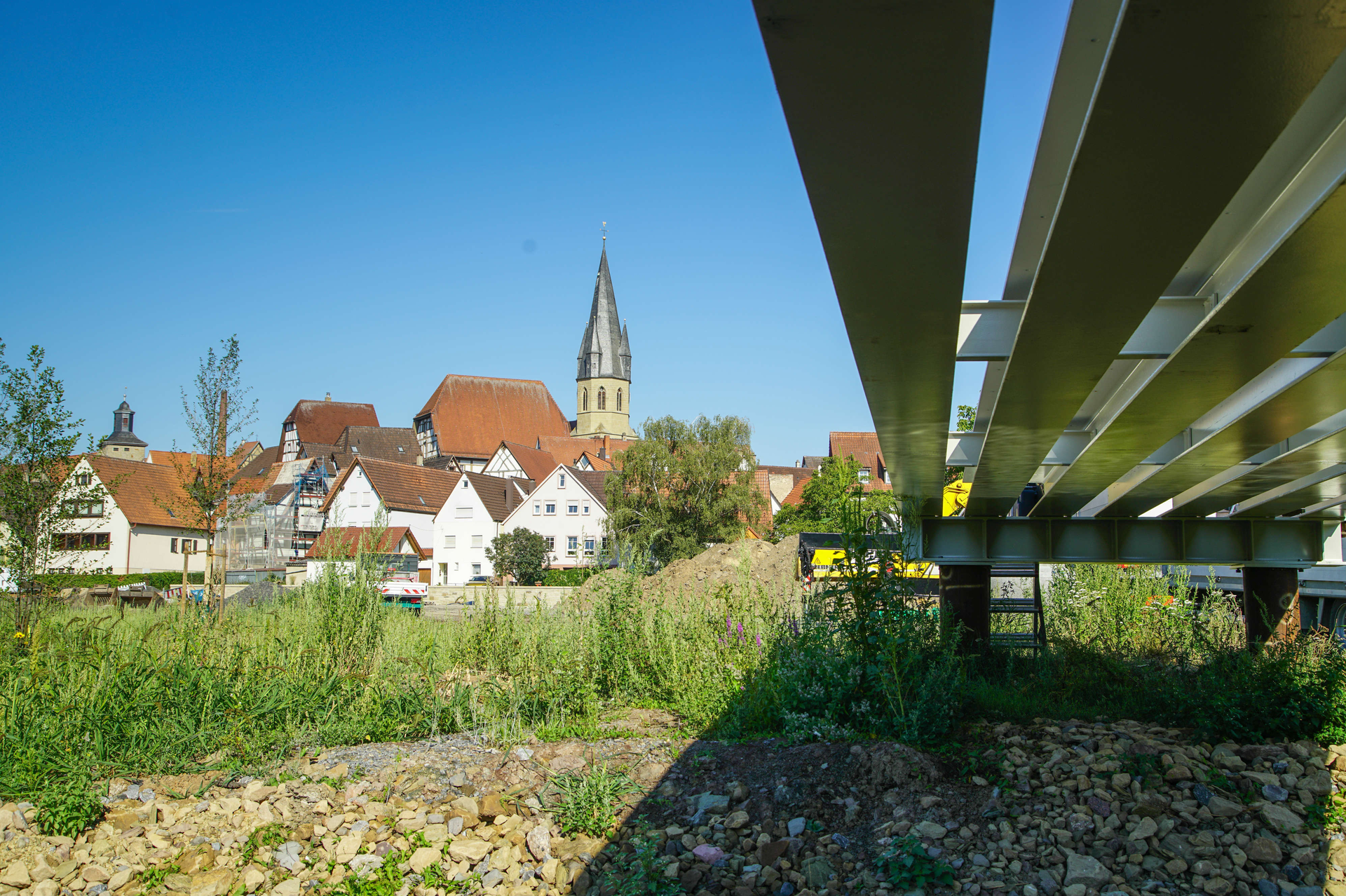 Folgt man den 14 Wassertischen - dem ehemaligen Mühlkanal - an der Stadtmauer entlang, gelangt man direkt in die historische Fachwerkaltstadt von Eppingen und den "Schwanen". Weiterführt der Weg über die Bachwegle-Promenade zu weiteren Parkanlagen der ehemaligen Gartenschau.