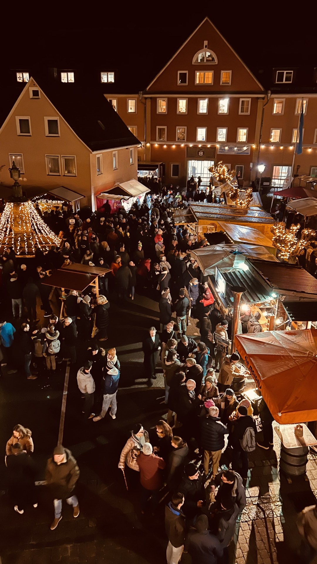 Schon am Freitag beginnt der Weihnachtsmarkt mit einem stimmungsvollen Warm-up vor dem Rathaus: Livemusik, leckere Speisen und Getränke sorgen für einen gemütlichen Auftakt.