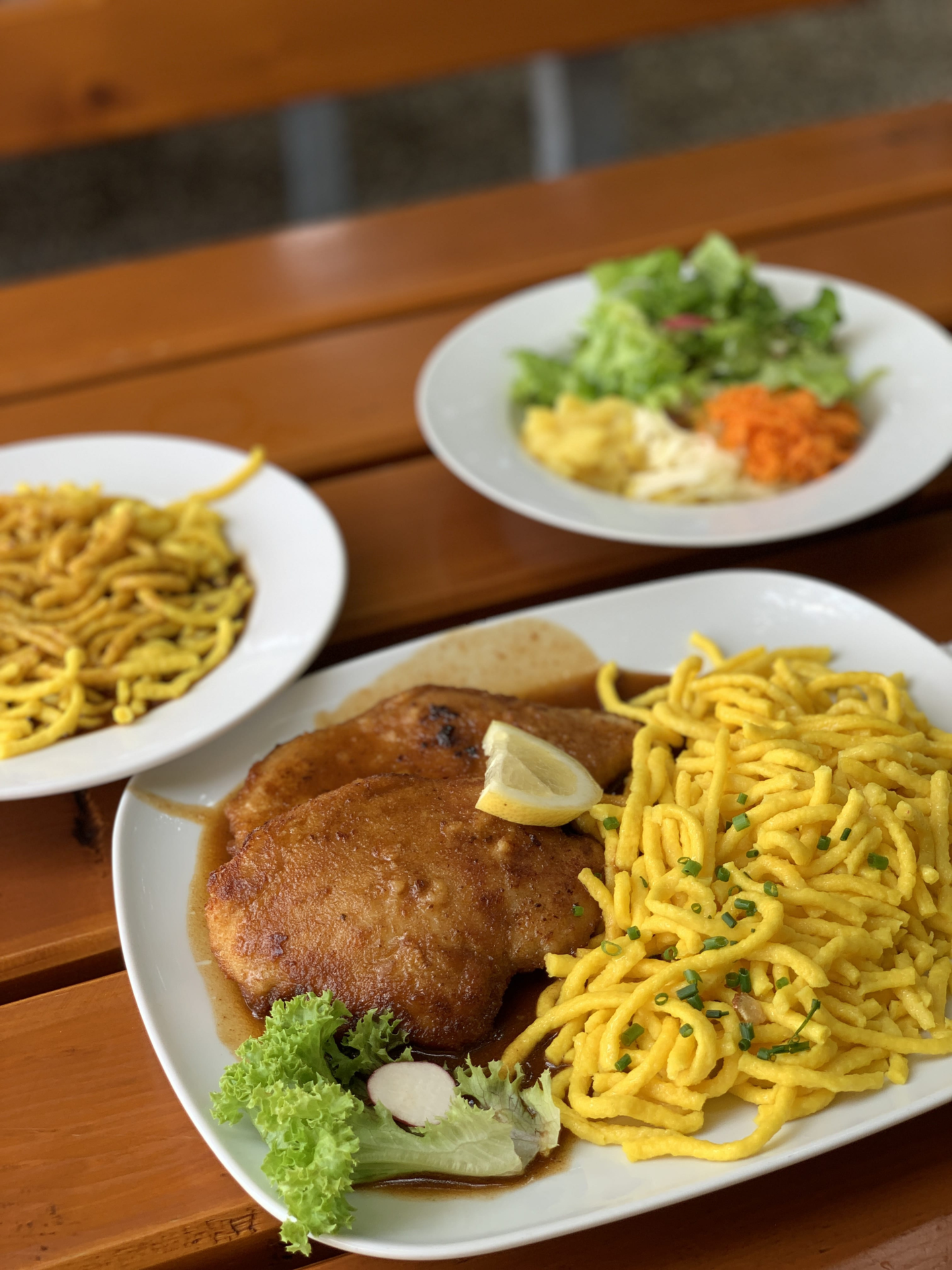 In der Waldschenke Hörnle werden regionale, schwäbische Klassiker und gutbürgerliche Hausmannskost angeboten. Soßen und Spätzle kommen aus eigener Herstellung.