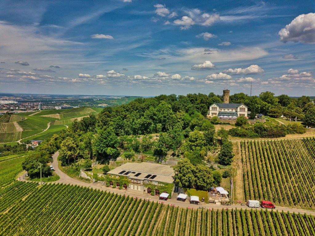 Der Weinausschank liegt am Wein Panorama Weg Heilbronn direkt am weithin sichtbaren Hochwasserbehälter. Vom Weinausschank öffnet sich ein toller Ausblick über Heilbronn und das Neckarbecken.