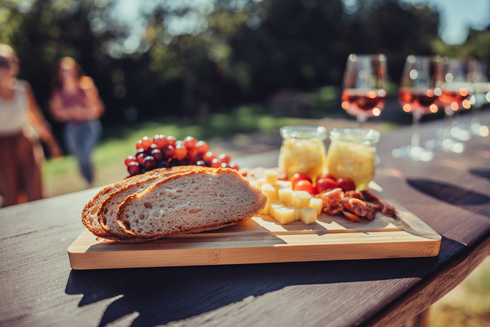 Darüber hinaus gibt es ein kleines Essensangebot, wie zum Beispiel Leckereien vom Grill und Käseplatten.