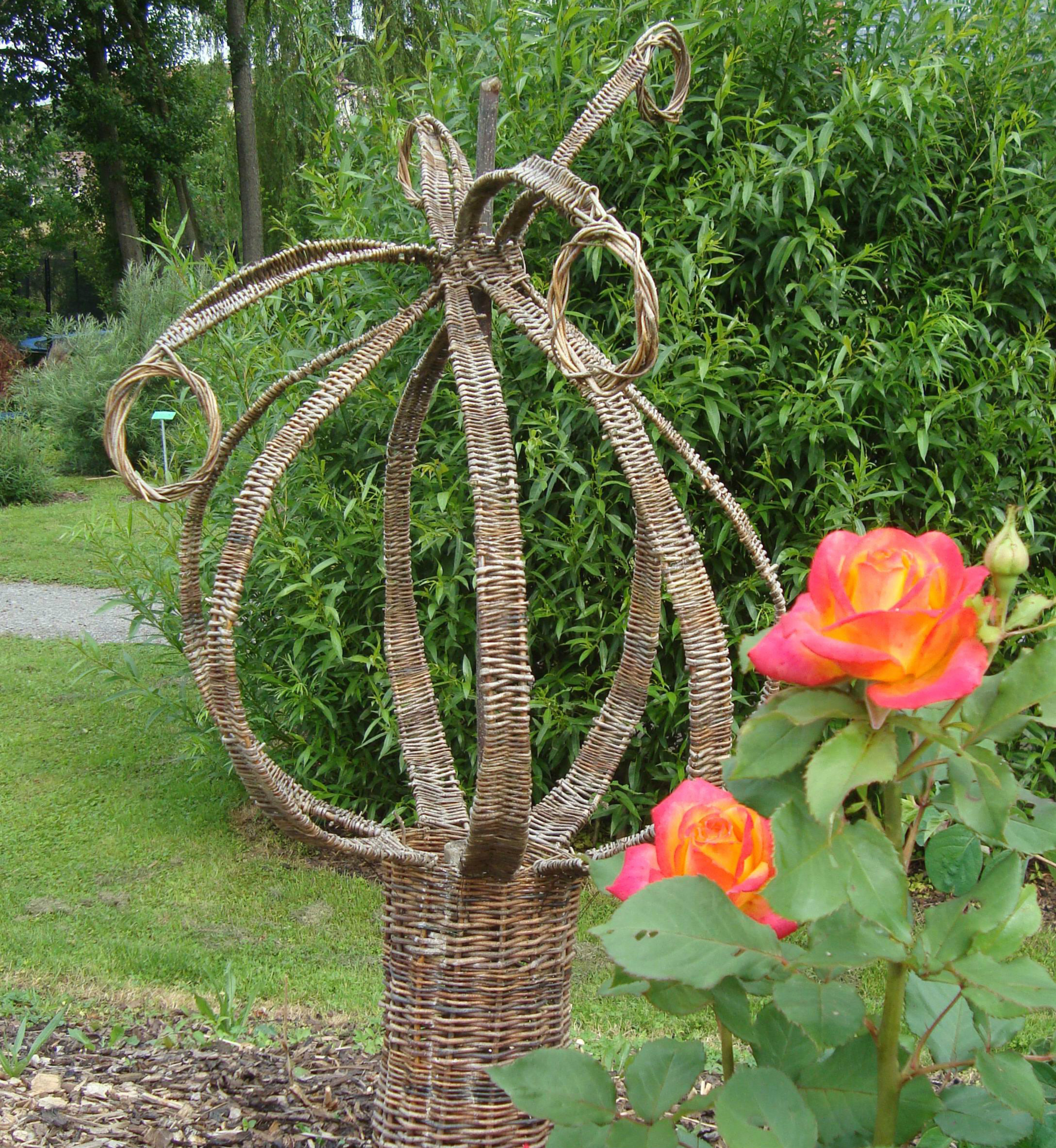 - Über die vielfältige Nutzung der Weide geben zahlreiche Weidenskulpturen, lebende Portale, Zäunchen, Sitzmuschel und ein Kinderspielhaus Auskunft.