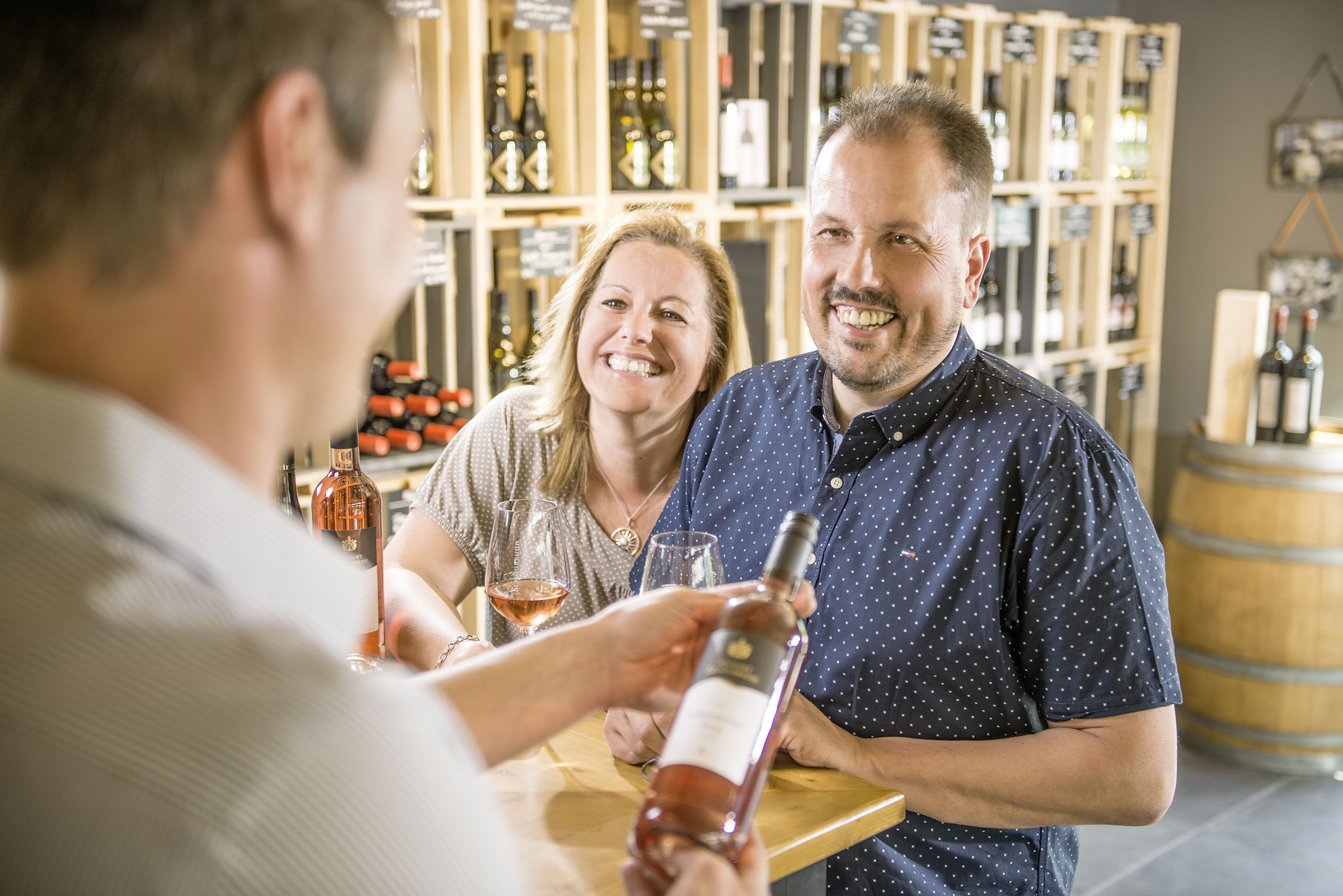 Auf Anfrage werden im modernen, neu gestalteten Verkaufsraum Weinproben durchgeführt - je nach Absprache auch mit Kellerführung und Häppchen zum Wein oder einer Weinbergführung mit dem Winzer selbst.