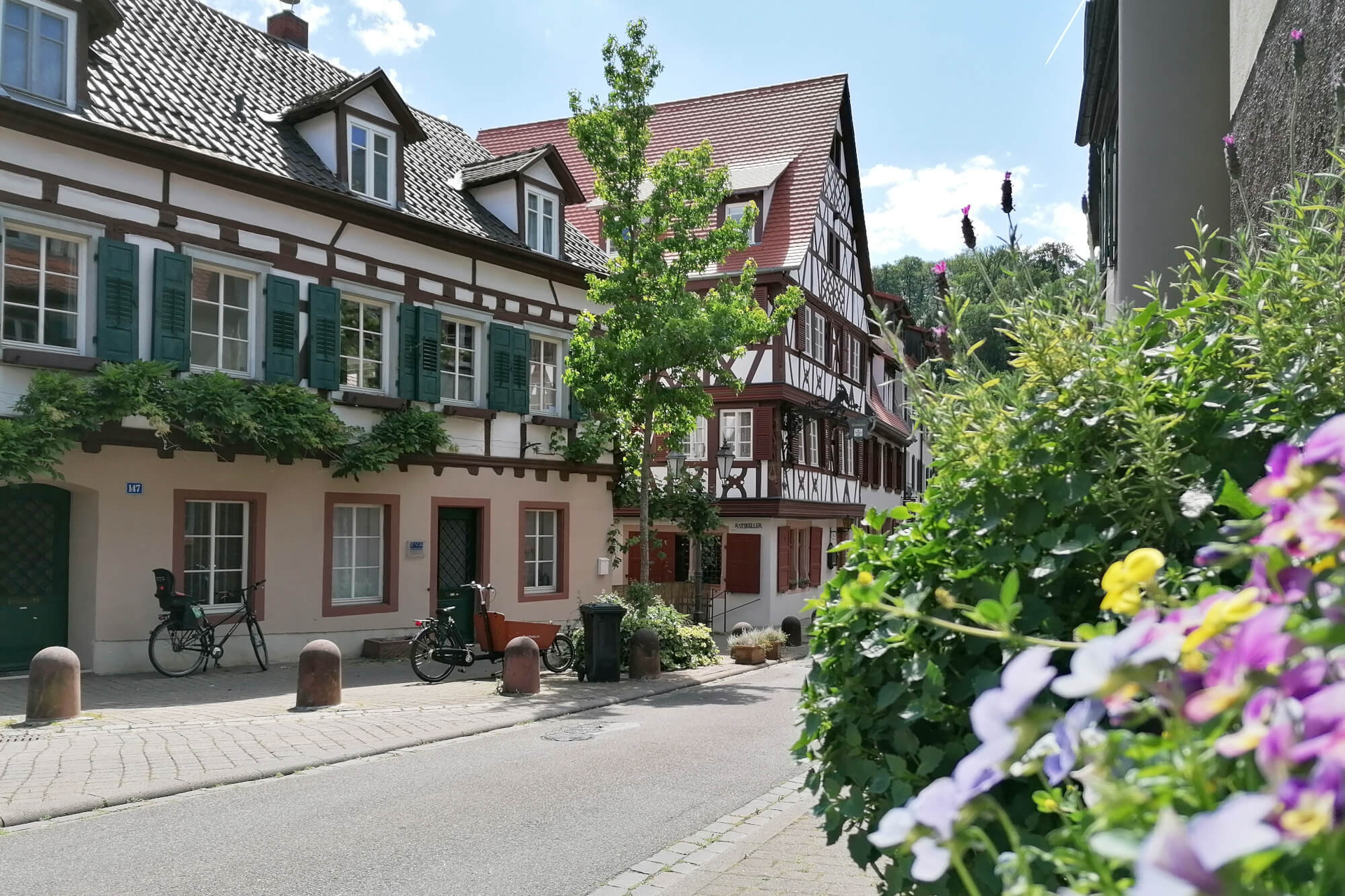 Im romantischen Gerberbachviertel geht es dafür umso beschaulicher zu. Dicht gedrängt stehen die alten Fachwerkhäuser in der Altstadt. Über Kopfsteinpflaster geht es vorbei an alten Zunft- und Handwerkerhäusern, welche Zeugnis ablegen über das hier früher betriebene Handwerk der Gerberei. Der kleine Bach und die von den Anwohnern liebevoll mit Blumen dekorierten Häuser laden zum Verweilen ein.