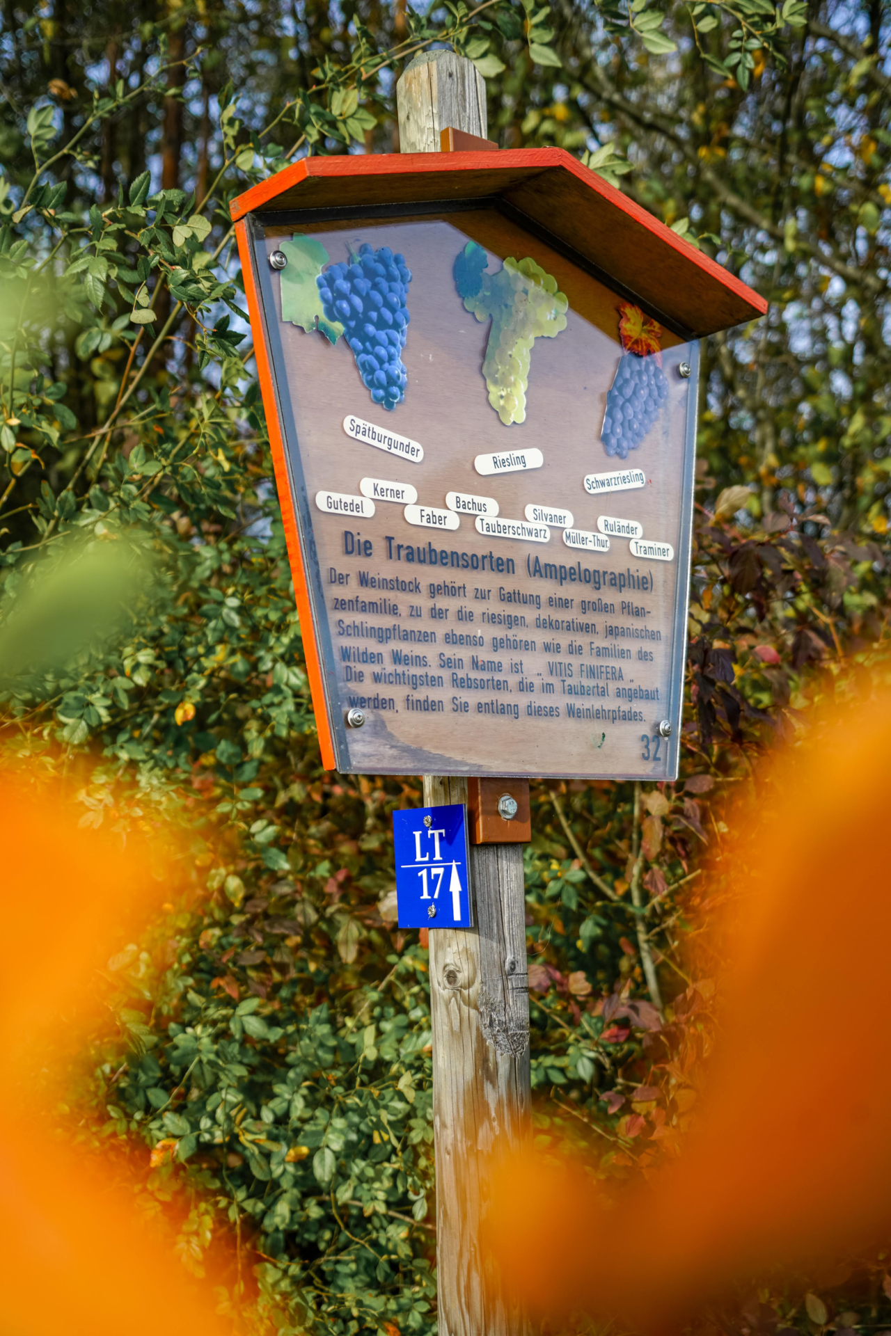 Ob über Silvaner oder Müller-Thurgau, ob über Riesling oder Grauburgunder, ob über Acolon oder über den nur in dieser Region angebauten Tauberschwarz, Idienformationstafeln vermitteln Wissenswertes über die regionalen Rebsorten und den Weinbau.