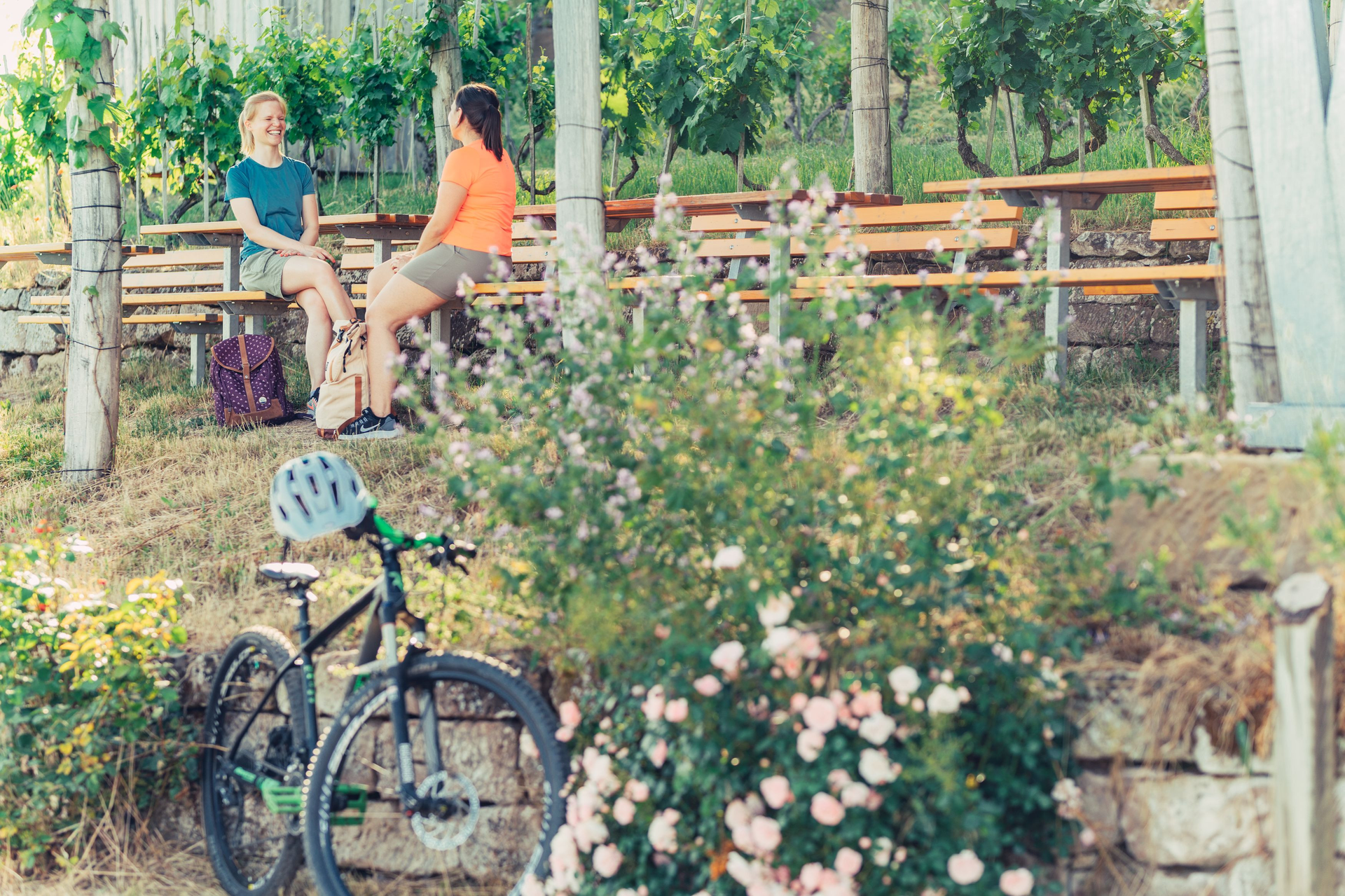 Die Weinpergola mit Tischen & Bänken eignet sich aber auch hervorragend um die wunderbare Aussicht bei einem Picknick zu genießen.