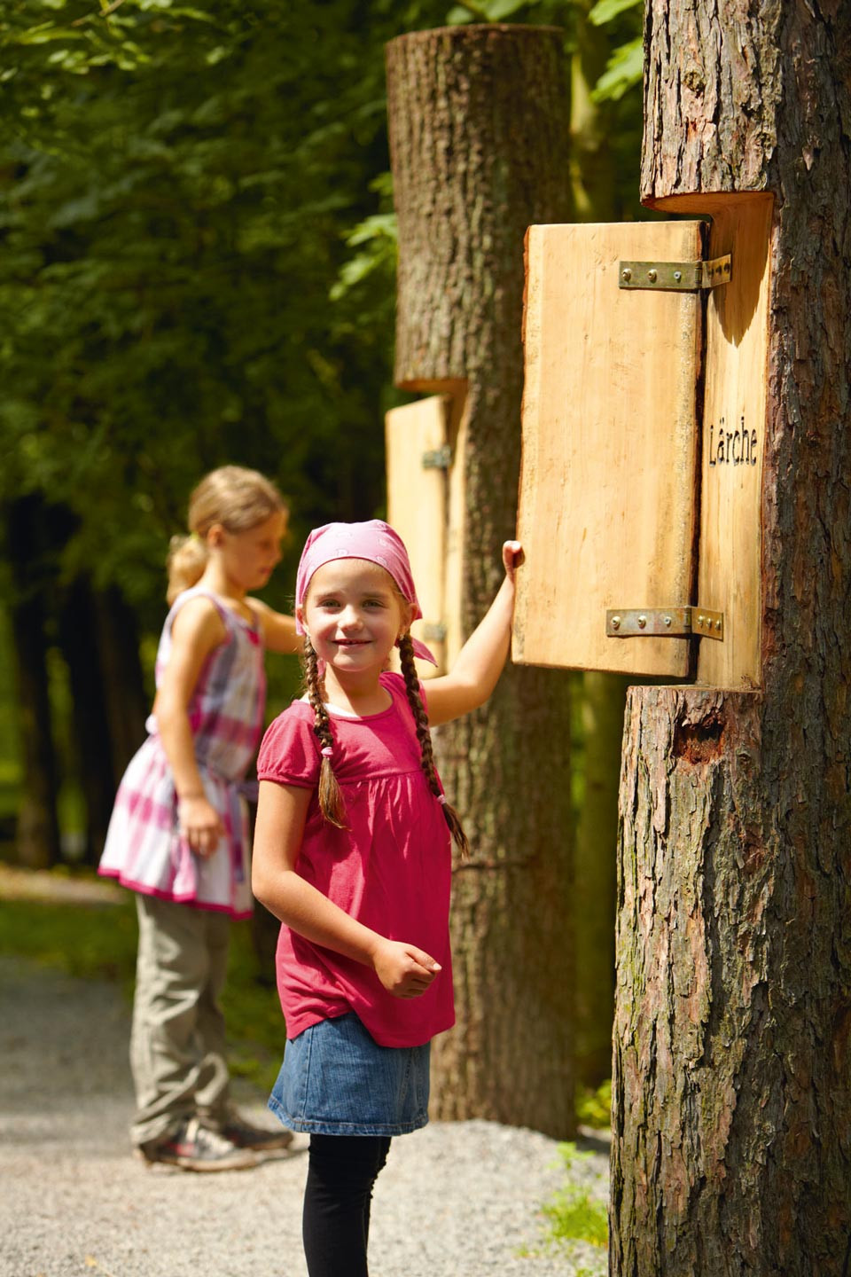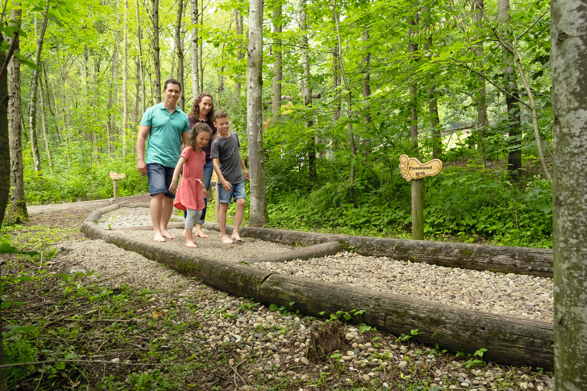 Der Walderlebnispfad vermittelt mit über 20 Stationen das Ökosystem Wald pädagogisch fundiert. Dazu dienen Spielgeräte, Ausstellungsstücke und Lehrtafeln, die über Pflanzen und Tiere informieren. Zu den pädagogischen Angeboten zählt auch der Barfußpfad. Über 150 Meter gilt es, barfuß verschiedene Materialien zu spüren und zu entdecken. Angefangen bei Rindenmulcharten über Splitt, Kies und Pflaster bis hin zu Baumstämmen – es kommt einiges auf die Füße zu. Nach dem Barfußmarsch kann man sich die Füße gleich an Ort und Stelle mit kaltem Wasser reinigen, das fördert zudem die Durchblutung.