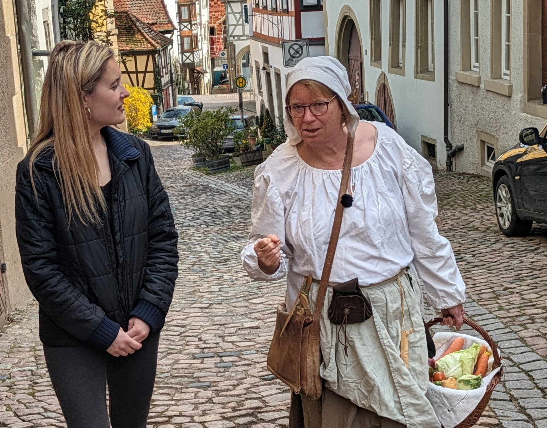 Alle diese Fragen, skurrile Anekdoten sowie Bekanntes und Unbekanntes aus der Geschichte vom Essen und Trinken, beantwortet das Küchenmädchen Ernestine auf ihrem Strefzug durch die Wimpfener Altstadt und deren Geschichte. Guten Appetit!