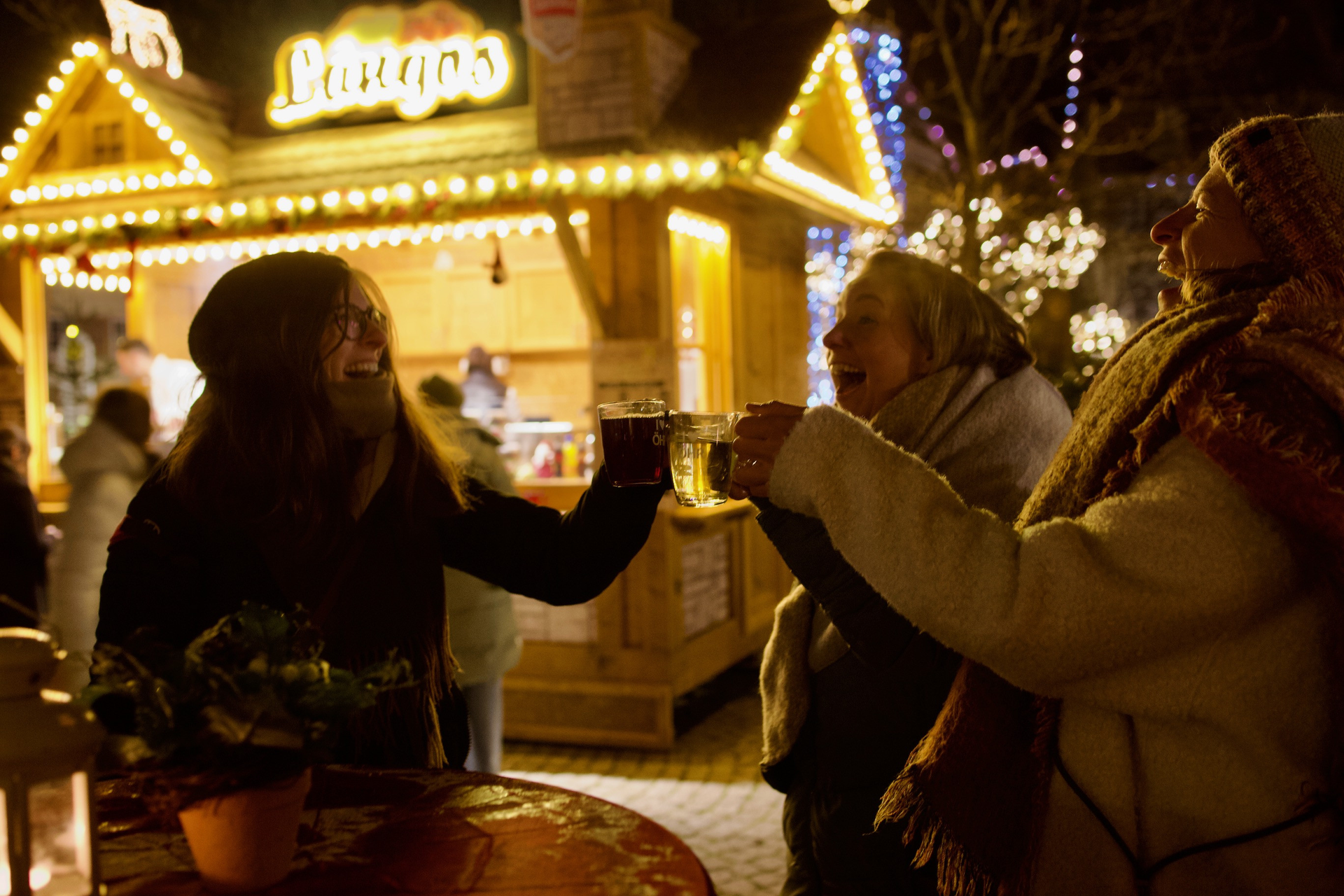 Dabei geht es nicht nur beim Spiel heiß her. Innerlich wärmen kann man sich an den umliegenden Ständen mit Glühwein oder Punsch. Das abwechslungsreiche Angebot an Speisen reicht von der Feuerwurst über Gyros, Burger, Langos bis hin zu den klassischen Pommes. Die Bratwurst und die Currywurst sind natürlich auch mit der von der Partie. Dazu runden süße Köstlichkeiten das Angebot ab.