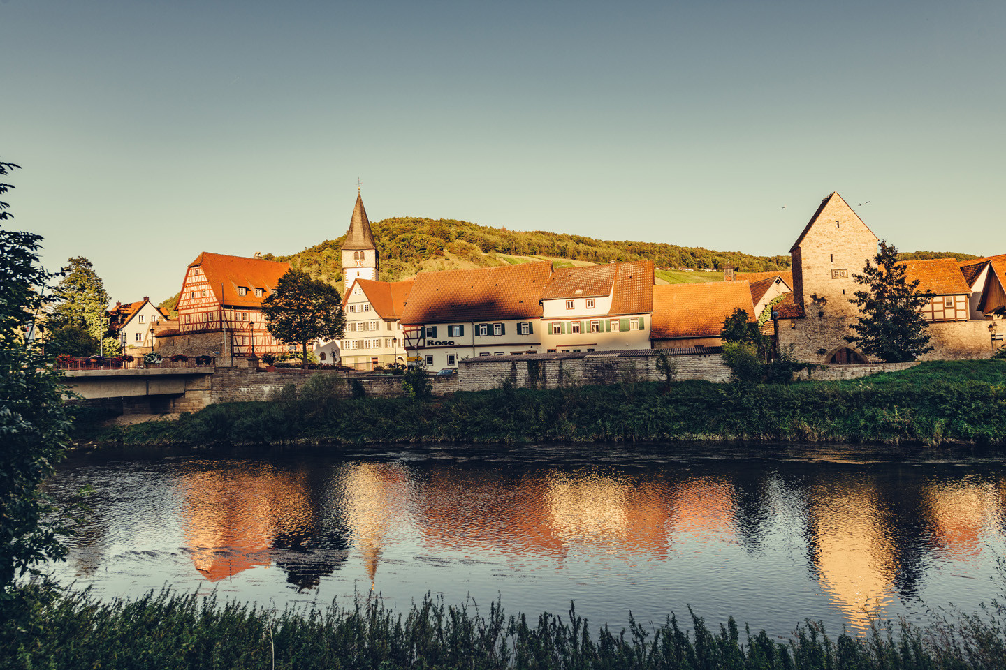 Der schmucke Weinort Niedernhall Niedernhall ist ein charmantes Fachwerkstädtchen im Kochertal, das mit seiner historischen Altstadt und den gut erhaltenen Fachwerkhäusern begeistert. Die malerischen Gassen und das beeindruckende Rathaus, erbaut 1477, laden zum Verweilen ein