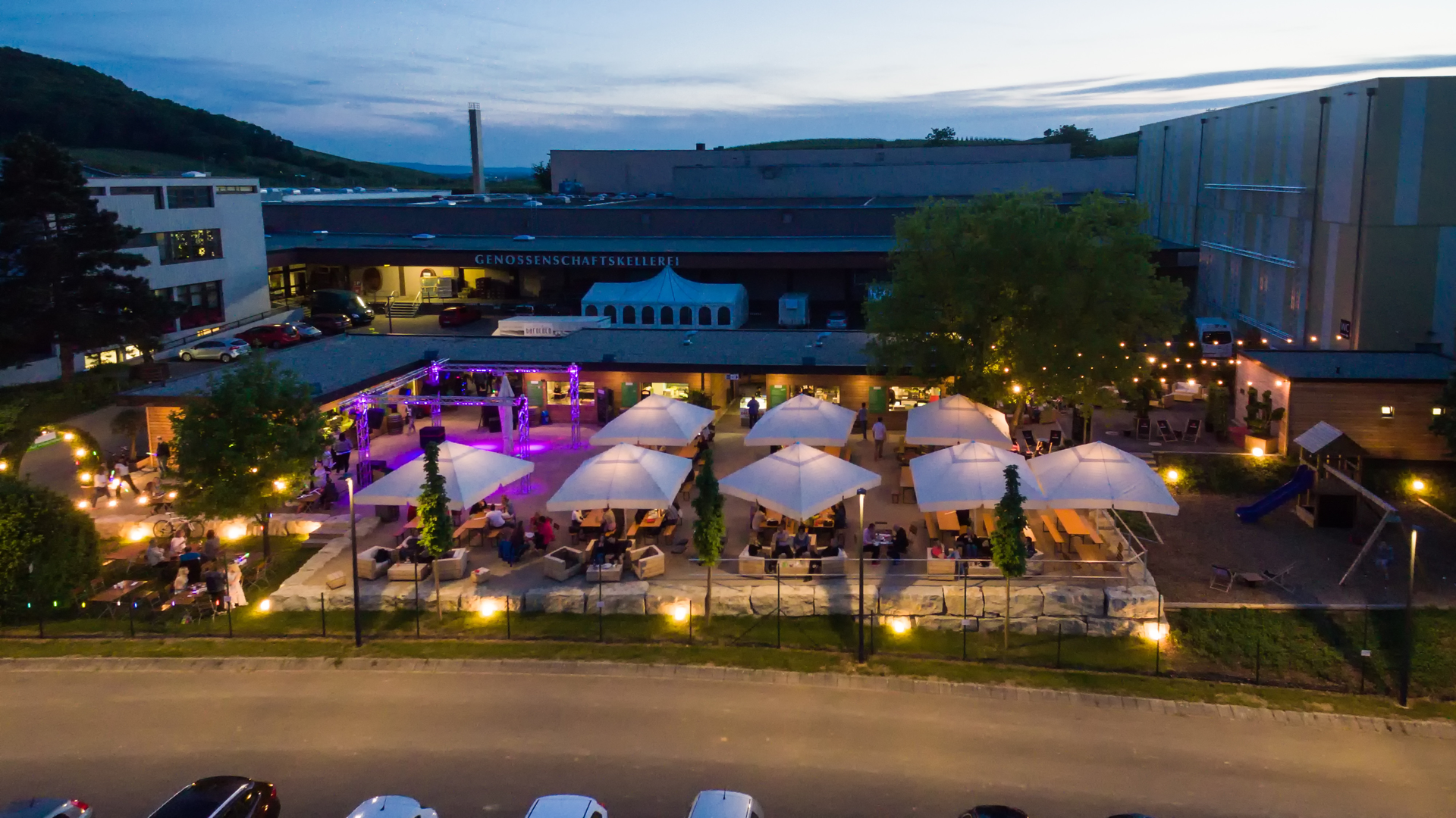 Besonders praktisch - auf dem Gelände der Genossenschaftskellerei befindet sich der Weingarten Heilbronn. Eine schöne Außengastronomie mit besonderer Weinauswahl und Panorama-Ausblick über die Weinberge.