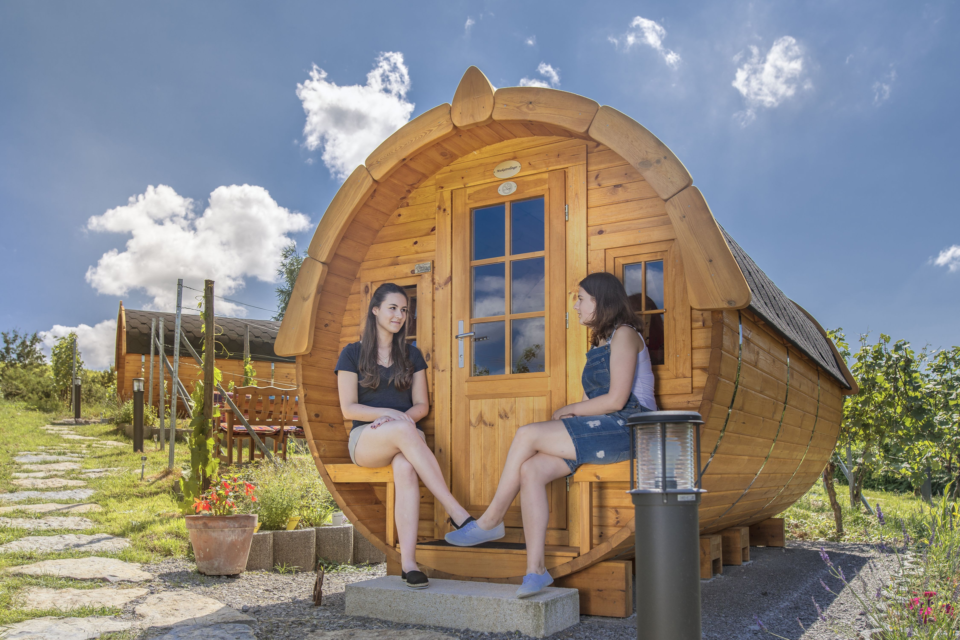 Ein Sanitärbereich mit Duschen, WC und Waschbecken sowie Waschmaschine & Trockner steht zur Verfügung und wird gemeinsam mit den Gästen der Schlaffässer auf dem Urlaubs-Winzerhof genutzt.