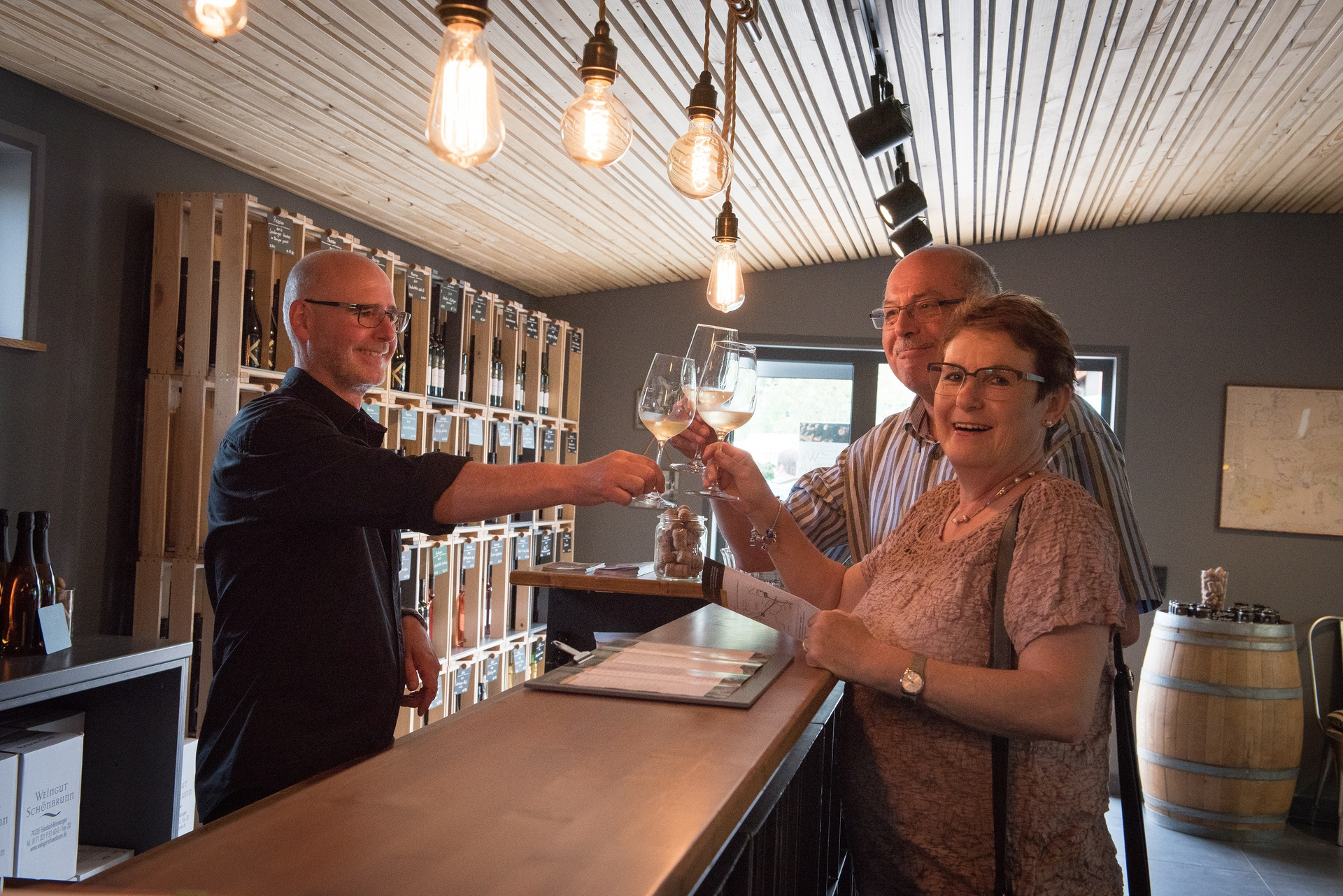 Das Weingut hat eine hauseigene Besenwirtschaft, die an mehreren Tagen im Monat geöffnet ist. Die Vinothek "Weingalerie" im Weingut Schönbrunn ist von Dienstag bis Samstag täglich einige Stunden geöffnet.