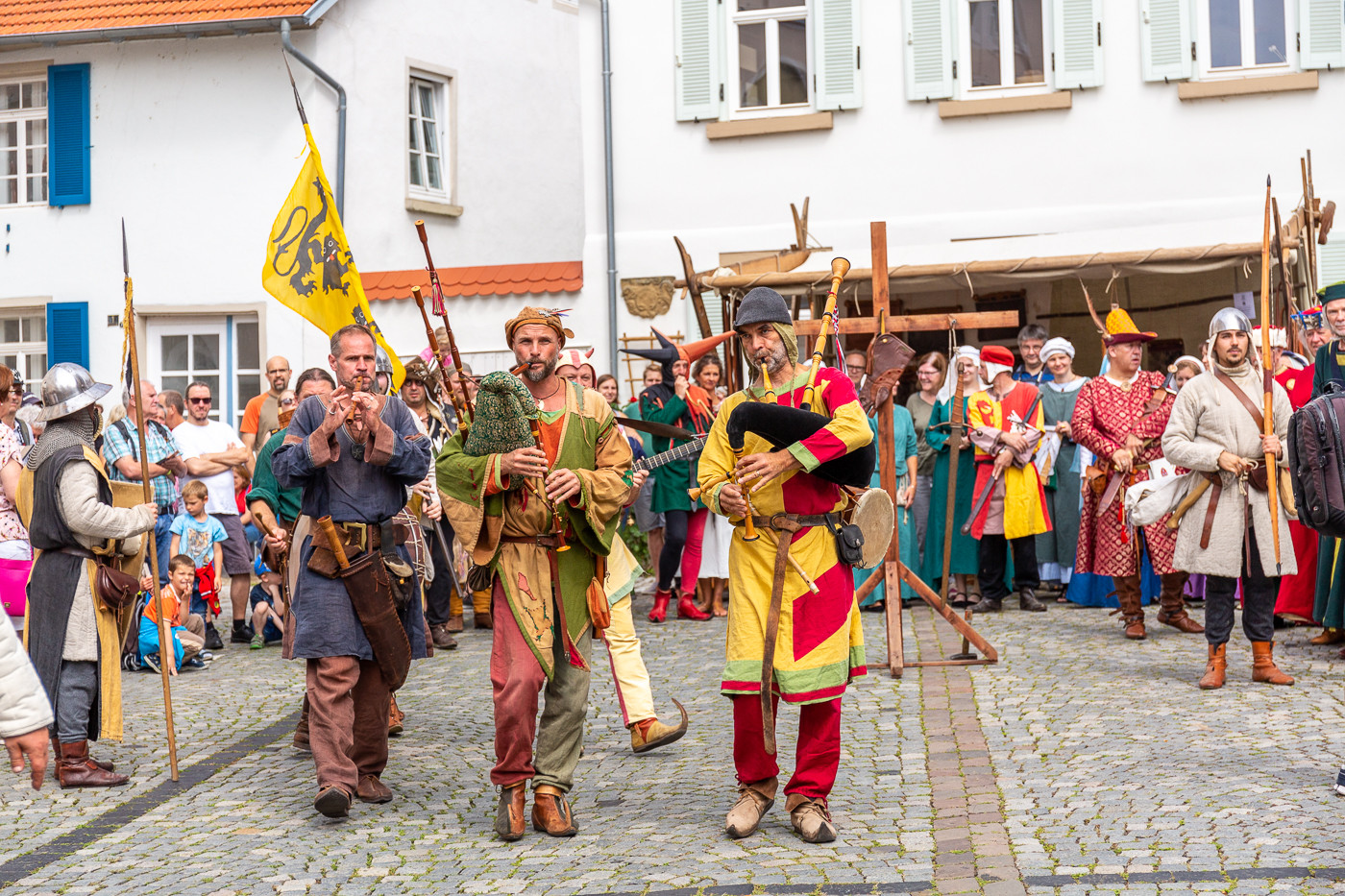 Ein besonderes Highlight ist der festliche Einzug des Marktvogts von Wimpfen mit seinem Gefolge. Der farbenprächtige Umzug startet am Löwenbrunnen und zieht durch die Stadt bis zur feierlichen Markteröffnung am Blauen Turm.