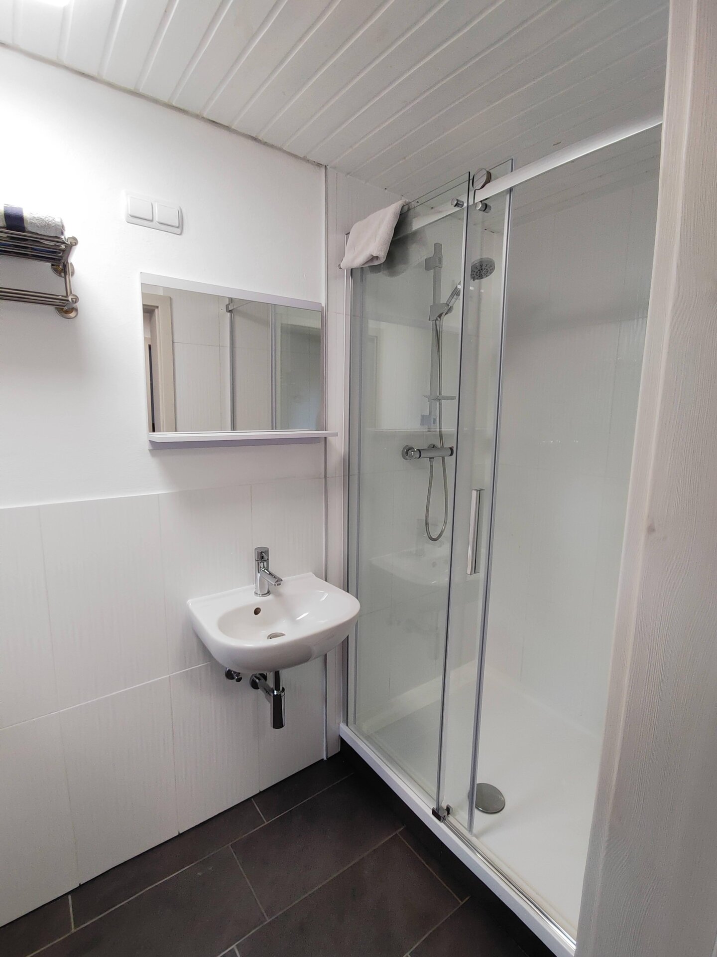 Ein Wohn-/Schlafraum mit separatem Bad/ WC mit Dusche, max zwei Personen, Kinderbett möglich, inkl. Einbauküche, kostenlosem WLAN, TV und Parkplatz. Radfahrer und Wanderer willkommen