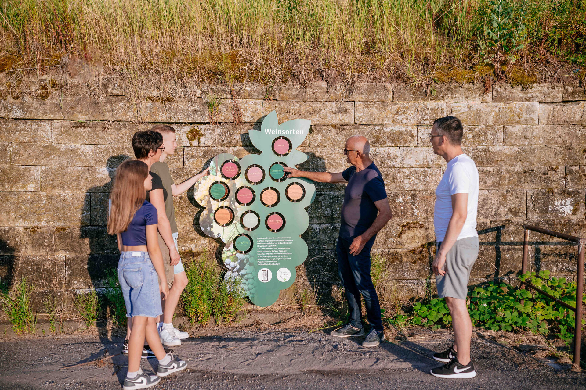 Lernen Sie die verschiedenen Arbeitsschritte im Weinberg kennen oder informieren Sie sich an Aktivstationen über die Rebsorten, die angebaut werden.