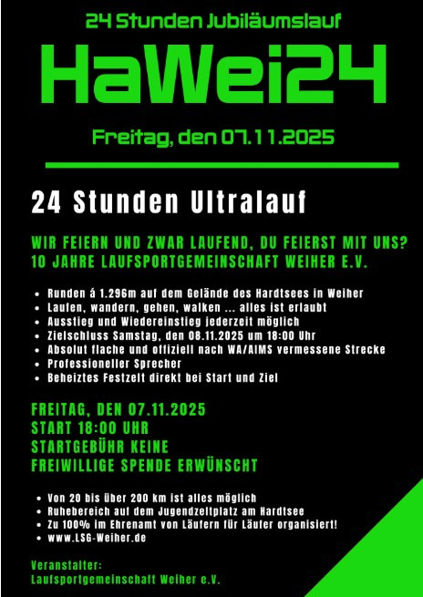 24h-Jubiläumslauf HaWei24 – 10 Jahre Laufsportgemeinschaft Weiher e.V.