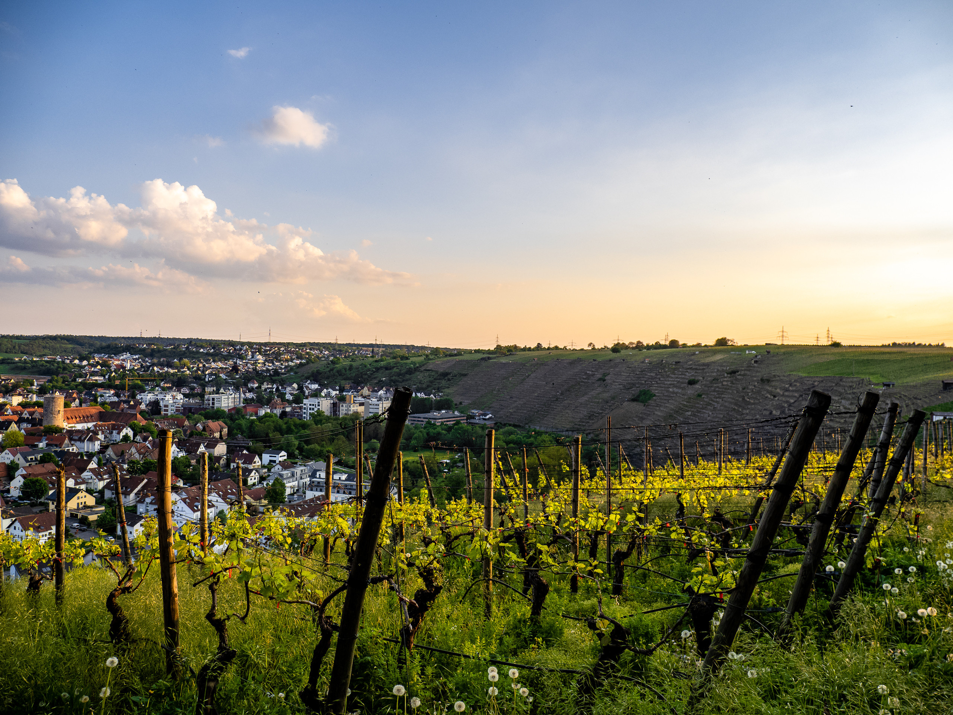 oberhalb des Weinbergs halb rechts, dem grob geschotterten Weg