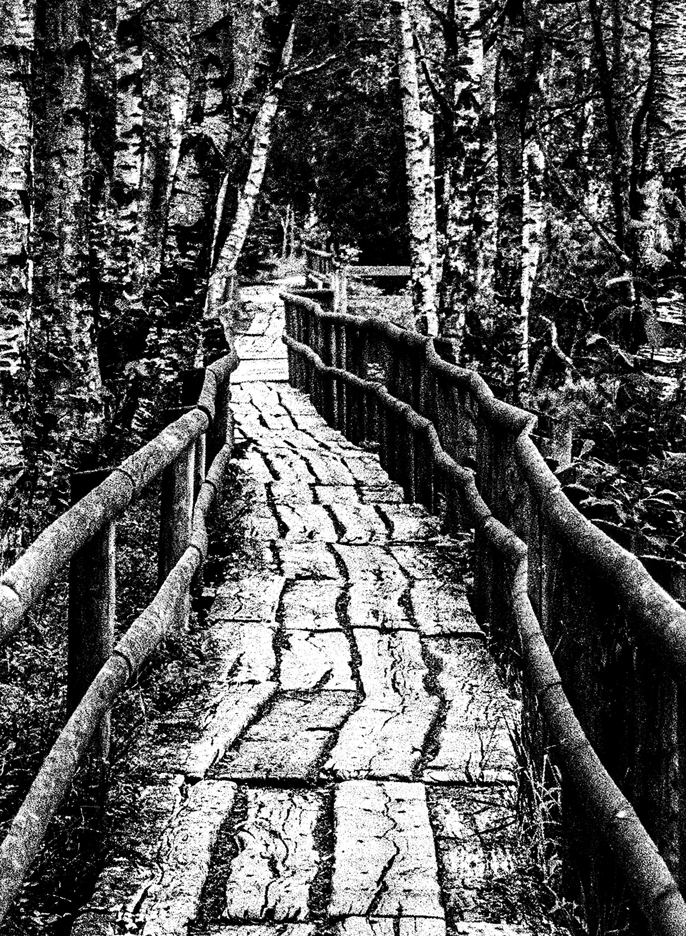 Titelseite Ausstellung Wald- und Wasserwelten, Alte Brücke mit Bäumen | © Adrian Schaub