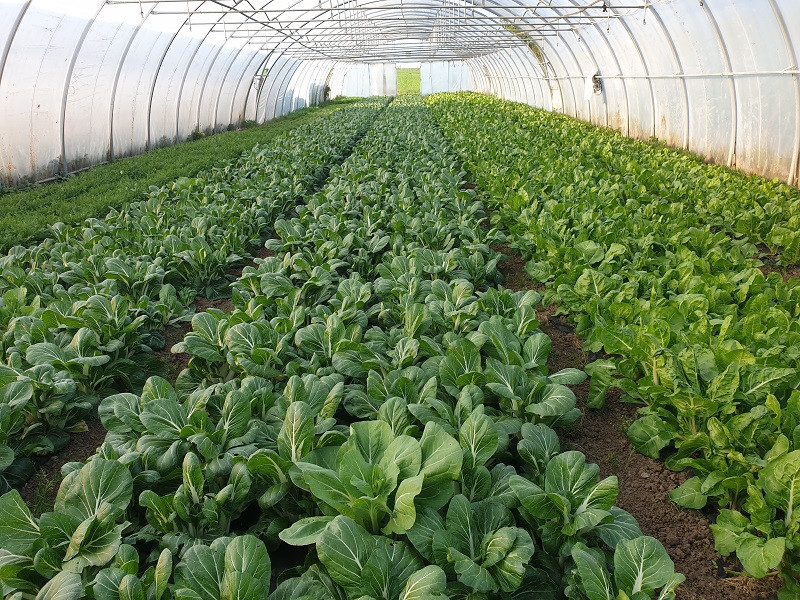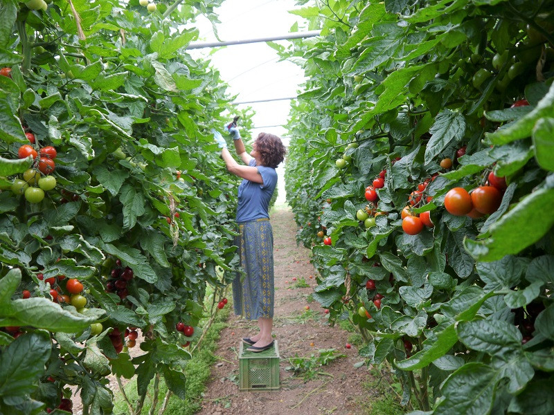 Auf 5000 m² Gewächshausfläche bauen wir ein umfangreiches Sortiment an Feingemüse an. Im Frühjahr sind es Salate, Kräuter, Kohlrabi, Radieschen, Mangold und Kresse. Im Sommer Tomaten, Paprika, Gurken, Auberginen und Stangenbohnen. Im Winter Feldsalat, Postelein und Spinat. Durch diesen vielfältigen Anbau haben wir in unseren Gewächshäusern wenig Krankheiten und Schädlinge.