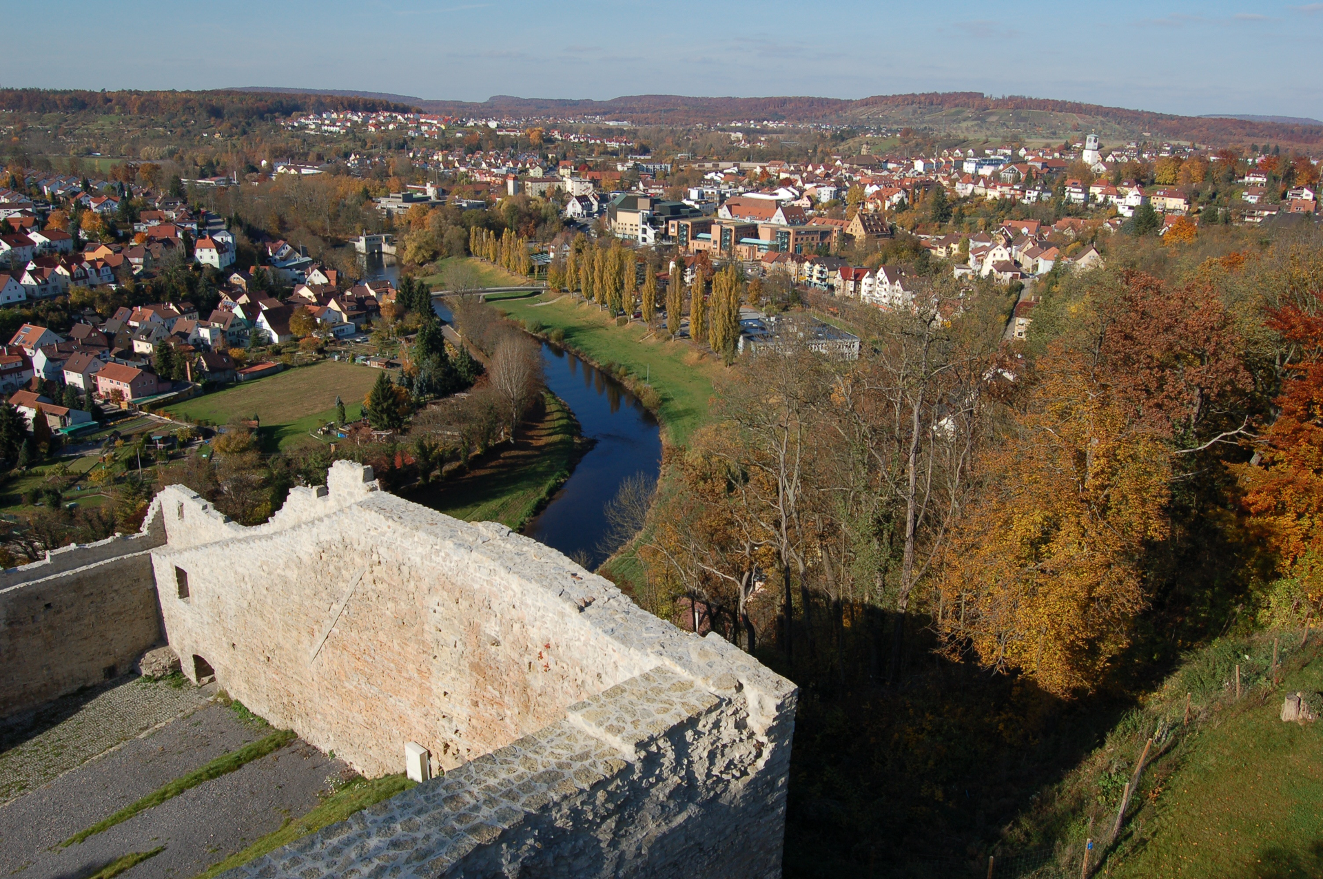 Wir starten bei der Kelter, in der auch das Heimatmuseum untergebracht ist (Sonntags von 14-17 Uhr geöffnet, Eintritt frei) und gehen dann den asphaltierten Weg hinauf zur Burgruine und Sender. Unterwegs informieren 16 Infotafeln über die wechselvolle Geschichte und Teile der Kulturlandschaft von Mühlacker.
