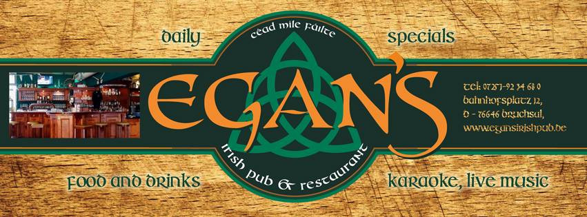 • Egan´s Irish Pub & Restaurant, Bahnhofplatz 12, 76646 Bruchsal