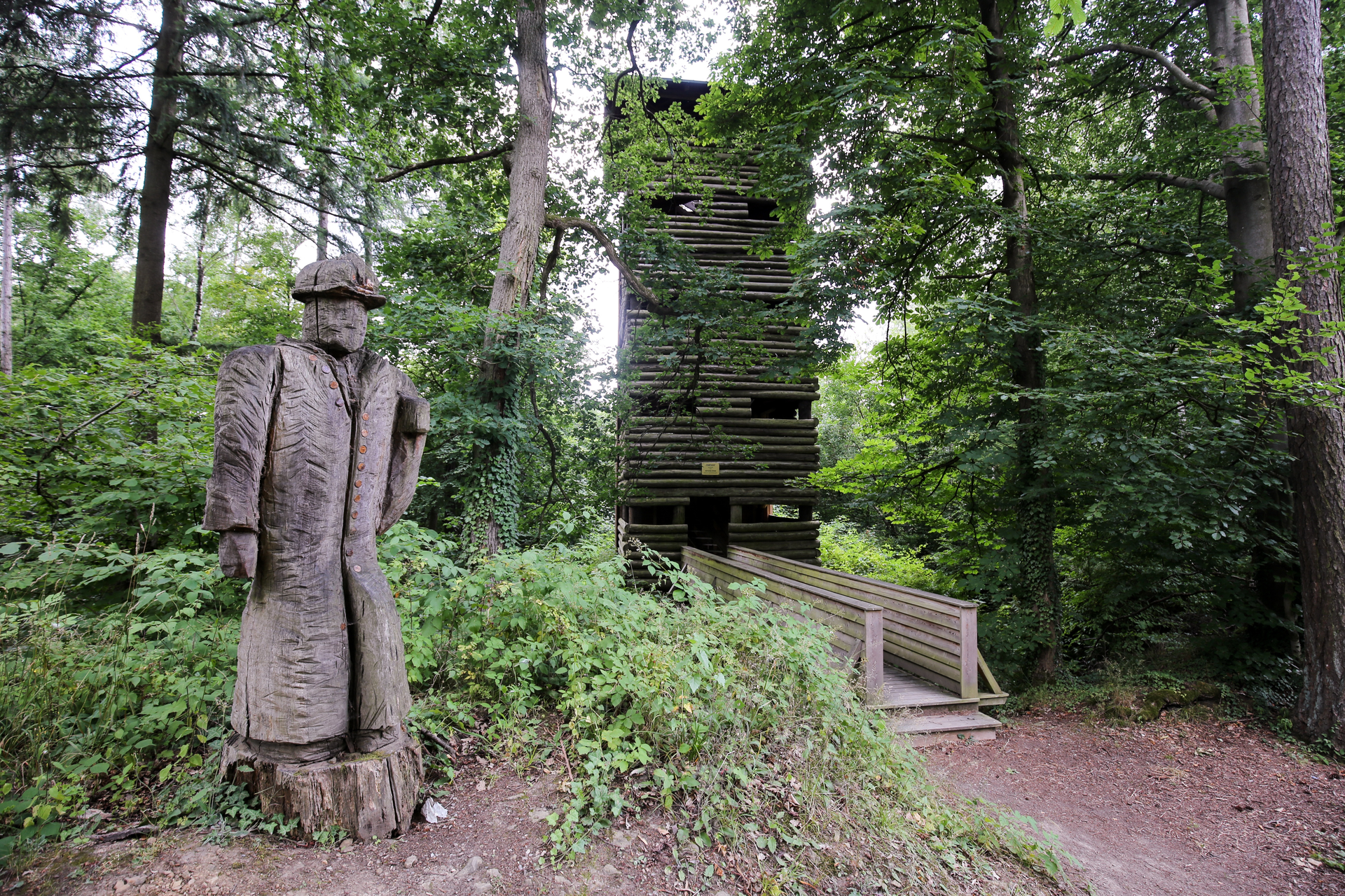 Vorbei am Grenzsteinpfad und der Kopfrainhütte führt der Weg zu den 7 Brüdern. Es ist ein seltener siebenstämmiger Ahornbaum. Läuft man von dort weiter, kommt man am Bohlenpfad vorbei. Dieser befindet sich etwas außerhalb des Wanderweges. Aber vorallem im Frühjahr, wenn dort der Bärlauch blüht, lohnt sich ein Abstecher. Er befindet sich am Zufluss des Jägersees und bildet das reizvolle Ende des Waldfühlpfades. Er erlaubt das Begehen dieses sumpfigen Geländes.
